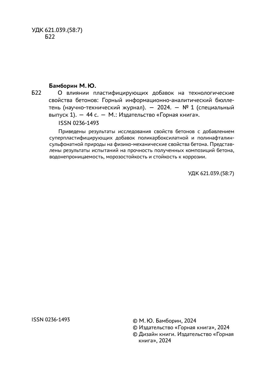 О влиянии пластифицирующих добавок на технологические свойства бетонов: Горный информационно-аналитический бюллетень № 1. Специальный выпуск 1
