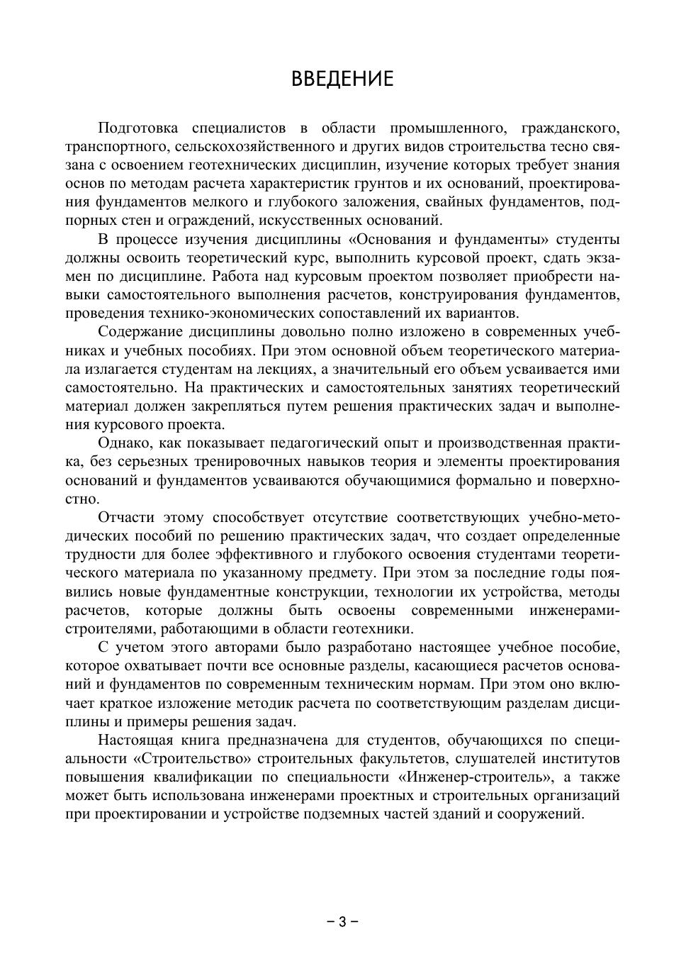 В учебном пособии рассматриваются основные положения и примеры решения наиболее распространенных задач по дисциплине «Основания и фундаменты»: проектирование фундаментов мелкого заложения, свай и свайных фундаментов, в т. ч. свайно-плитных; проектирование искусственных оснований; расчет гравитационных подпорных стен; расчет ограждений котлованов.