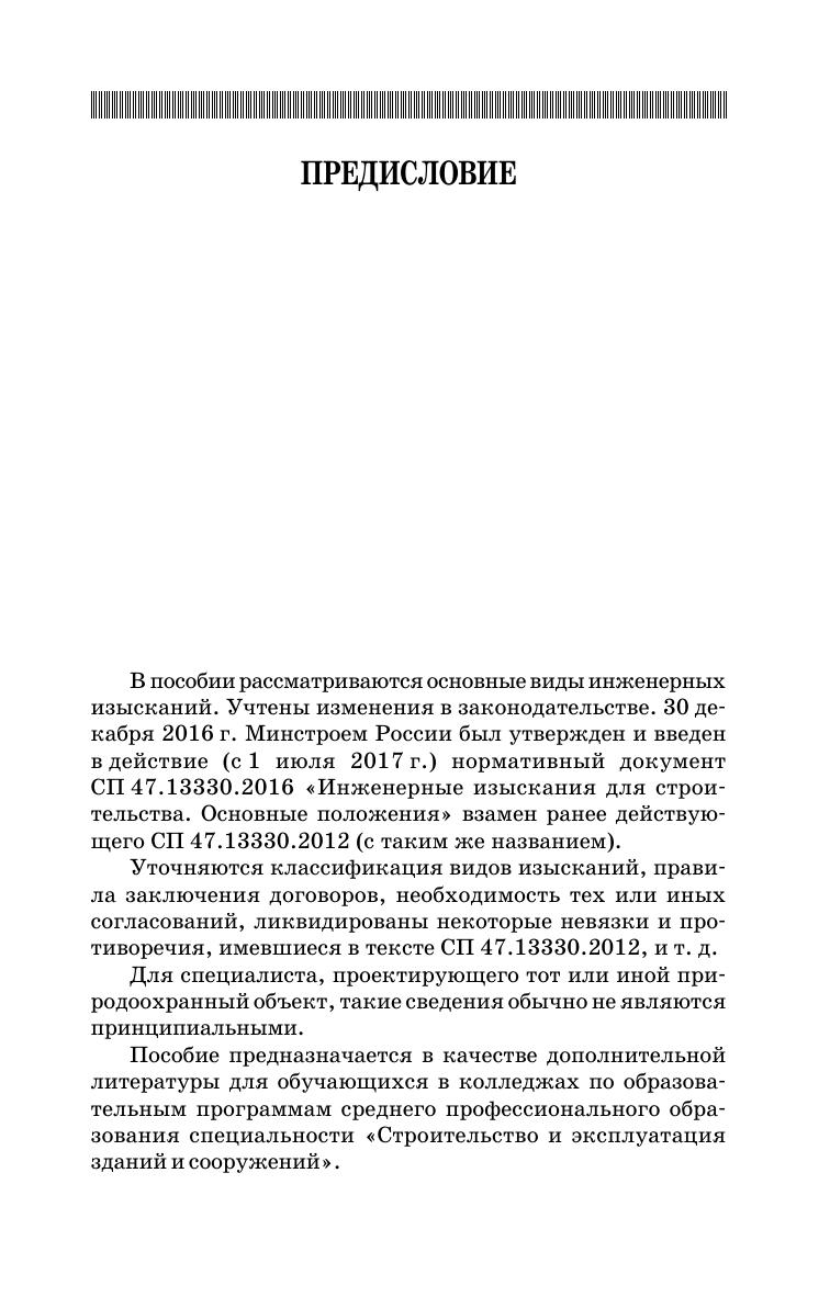 В учебном пособии приведены общие правила организации и проведения инженерных изысканий для строительства (в первую очередь объектов природообустройства). Подробно рассматриваются особенности основных видов изысканий: инженерно-геодезических, инженерно-геологических, геотехнических, инженерно-гидрометеорологических, инженерно-экологических, а также изысканий грунтовых строительных материалов и подземных источников водоснабжения.