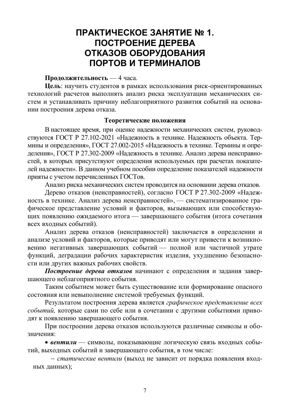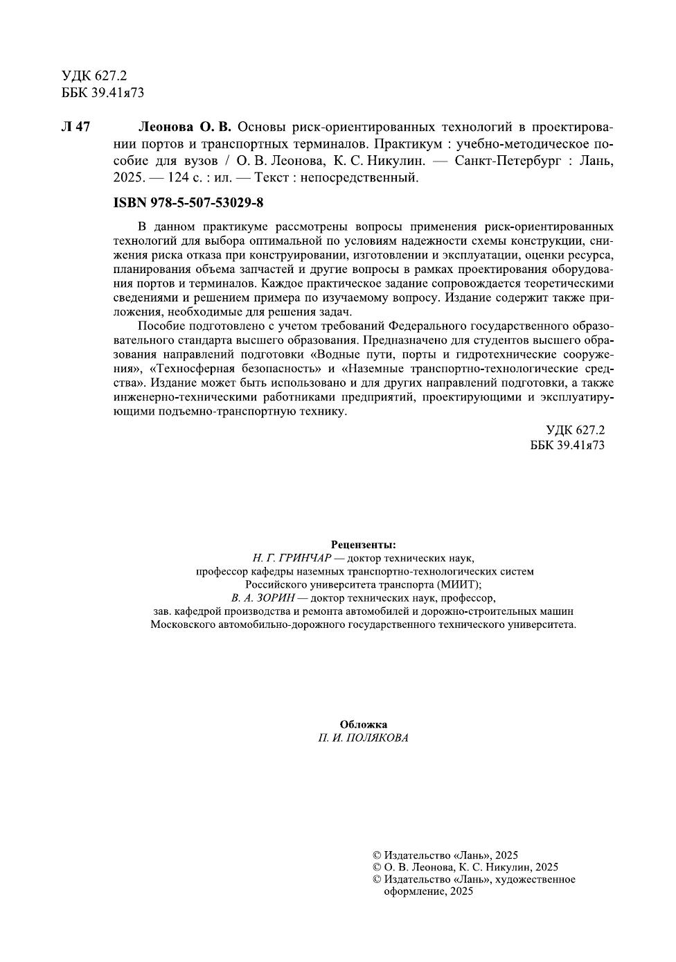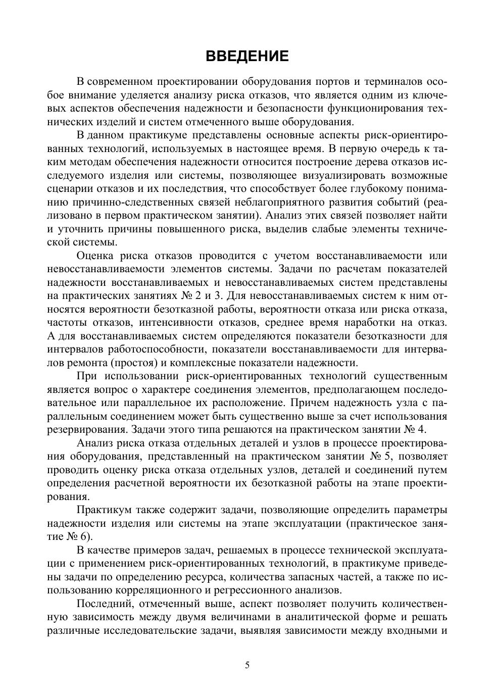 В данном практикуме рассмотрены вопросы применения риск-ориентированных технологий для выбора оптимальной по условиям надежности схемы конструкции, снижения риска отказа при конструировании, изготовлении и эксплуатации, оценки ресурса, планирования объема запчастей и другие вопросы в рамках проектирования оборудования портов и терминалов. Каждое практическое задание сопровождается теоретическими сведениями и решением примера по изучаемому вопросу. Издание содержит также приложения, необходимые для решения задач. Пособие подготовлено с учетом требований Федерального государственного об-разовательного стандарта высшего образования. Предназначено для студентов высшего образования направлений подготовки «Водные пути, порты и гидротехнические сооружения», «Техносферная безопасность» и «Наземные транспортно-технологические средства». Издание может быть использовано и для других направлений подготовки, а также инженерно-техническими работниками предприятий, проектирующими и эксплуатирующими подъемно-транспортную технику.