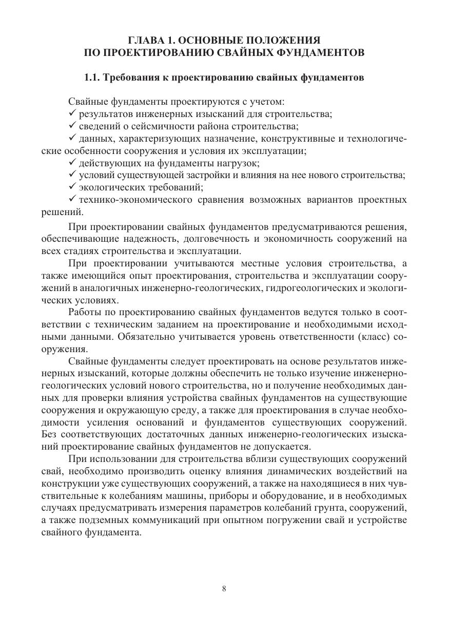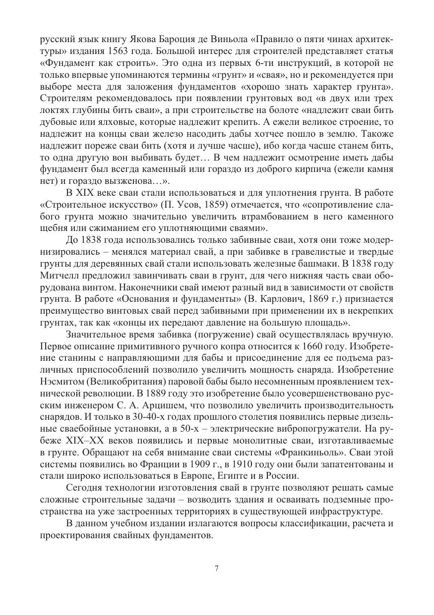 Изложены этапы проектирования свайных фундаментов, методы определения несущей способности и расчетной нагрузки на сваю, вопросы глубины заложения подошвы ростверков, конструирования свайных фундаментов, методы расчета свайных фундаментов по предельным состояниям.