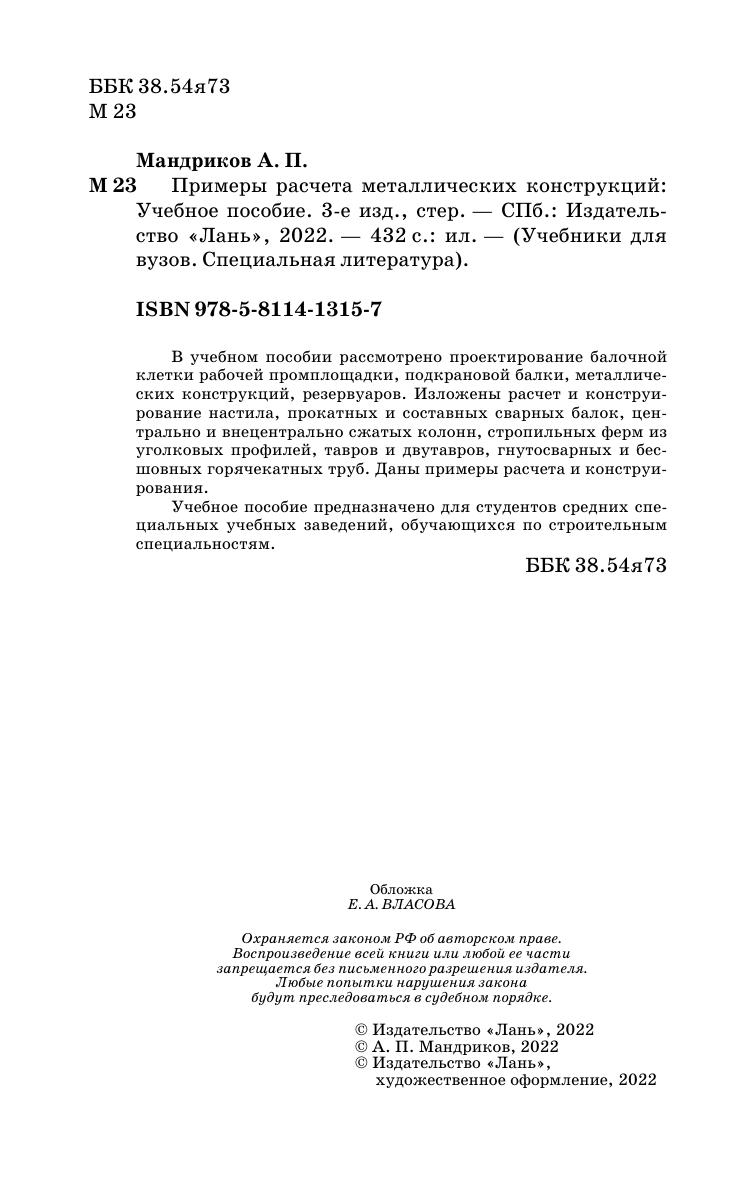 В учебном пособии рассмотрено проектирование балочной клетки рабочей промплощадки, подкрановой балки, металлических конструкций, резервуаров. Изложены расчет и конструирование настила, прокатных и составных сварных балок, центрально и внецентрально сжатых колонн, стропильных ферм из уголковых профилей, тавров и двутавров, гнутосварных и бесшовных горячекатных труб. Даны примеры расчета и конструирования. Учебное пособие предназначено для студентов средних специальных учебных заведений, обучающихся по строительным специальностям.