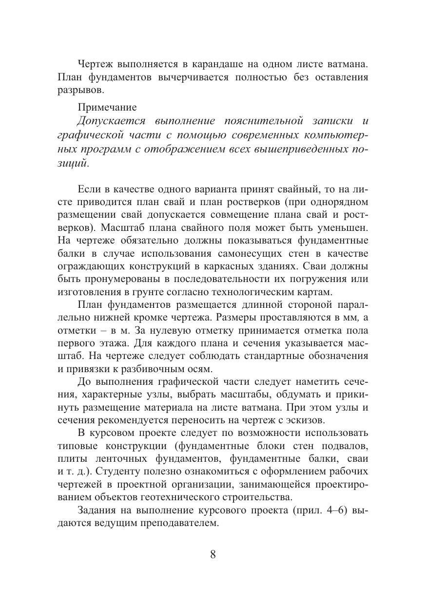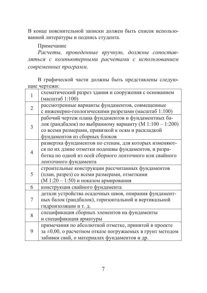 Приведена последовательность выполнения проекта, показан выбор наиболее экономически целесообразного варианта фундамента, обеспечивающего безаварийную эксплуатацию сооружения. Содержится порядок составления пояснительной записки и оформления чертежей.