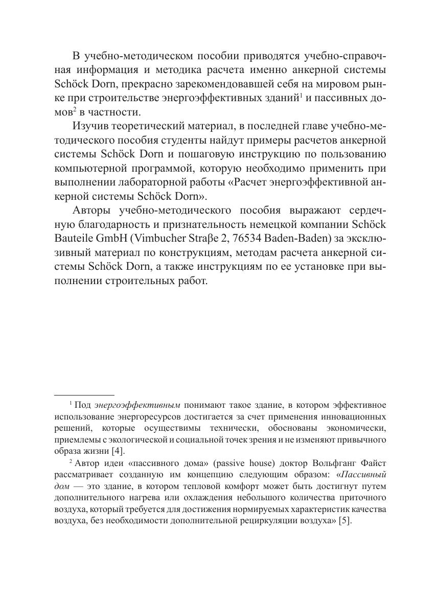 В учебно-методическом пособии представлен эксклюзивный материал о конструкциях, методах расчета, разновидностях анкерных систем Schöck Dorn. Инструкция по монтажу предоставлена компанией Schöck Bauteile GmbH и используется с ее разрешения. Большой объем научной информации, прилагаемый алгоритм расчета помогут магистрантам выполнить лабораторную работу по дисциплине «Энергоэффективность в стоительстве».