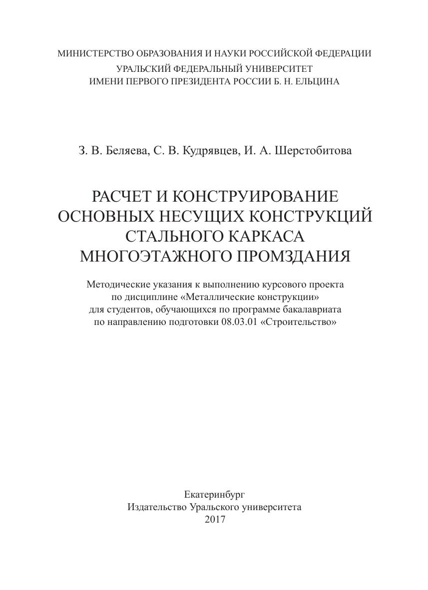 Расчет и конструирование основных несущих конструкций стального каркаса многоэтажного промздания: методические указания