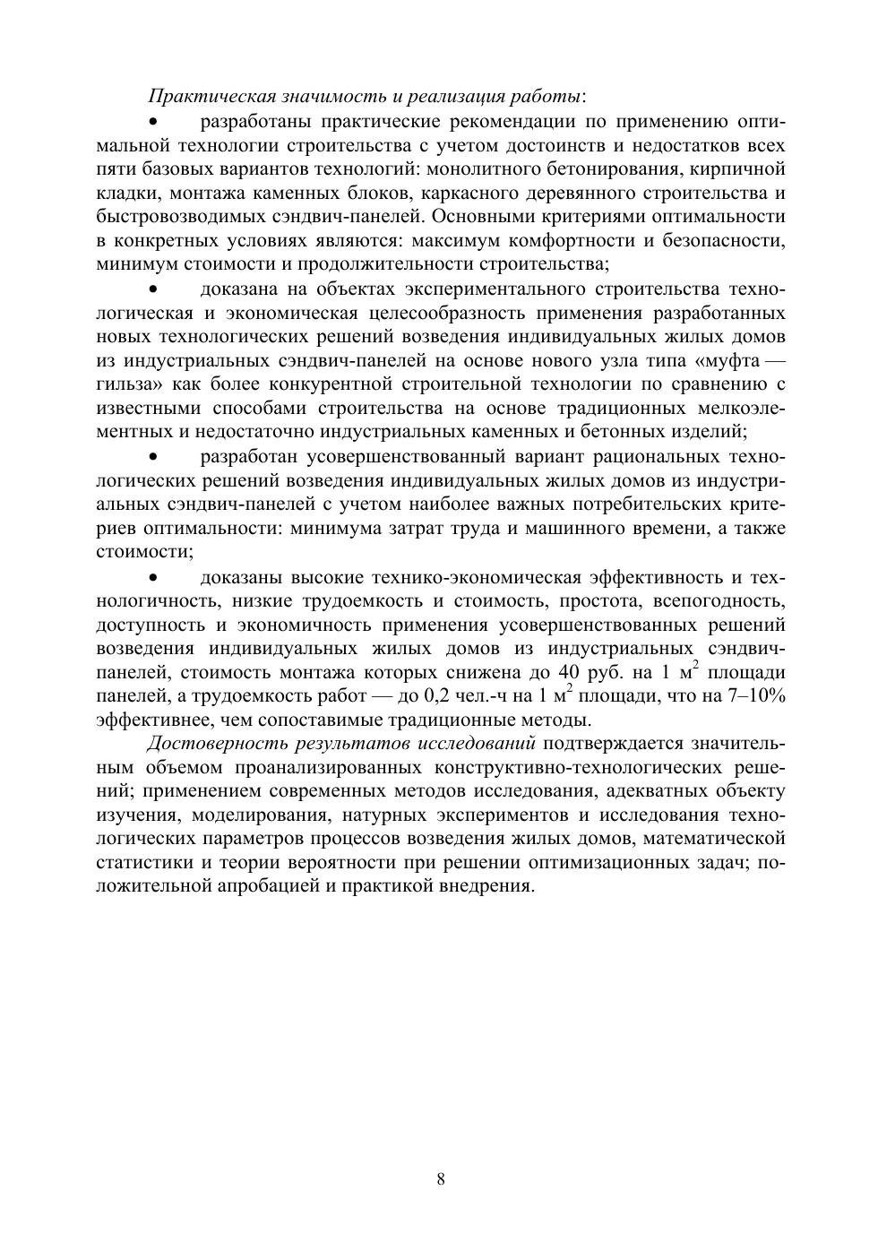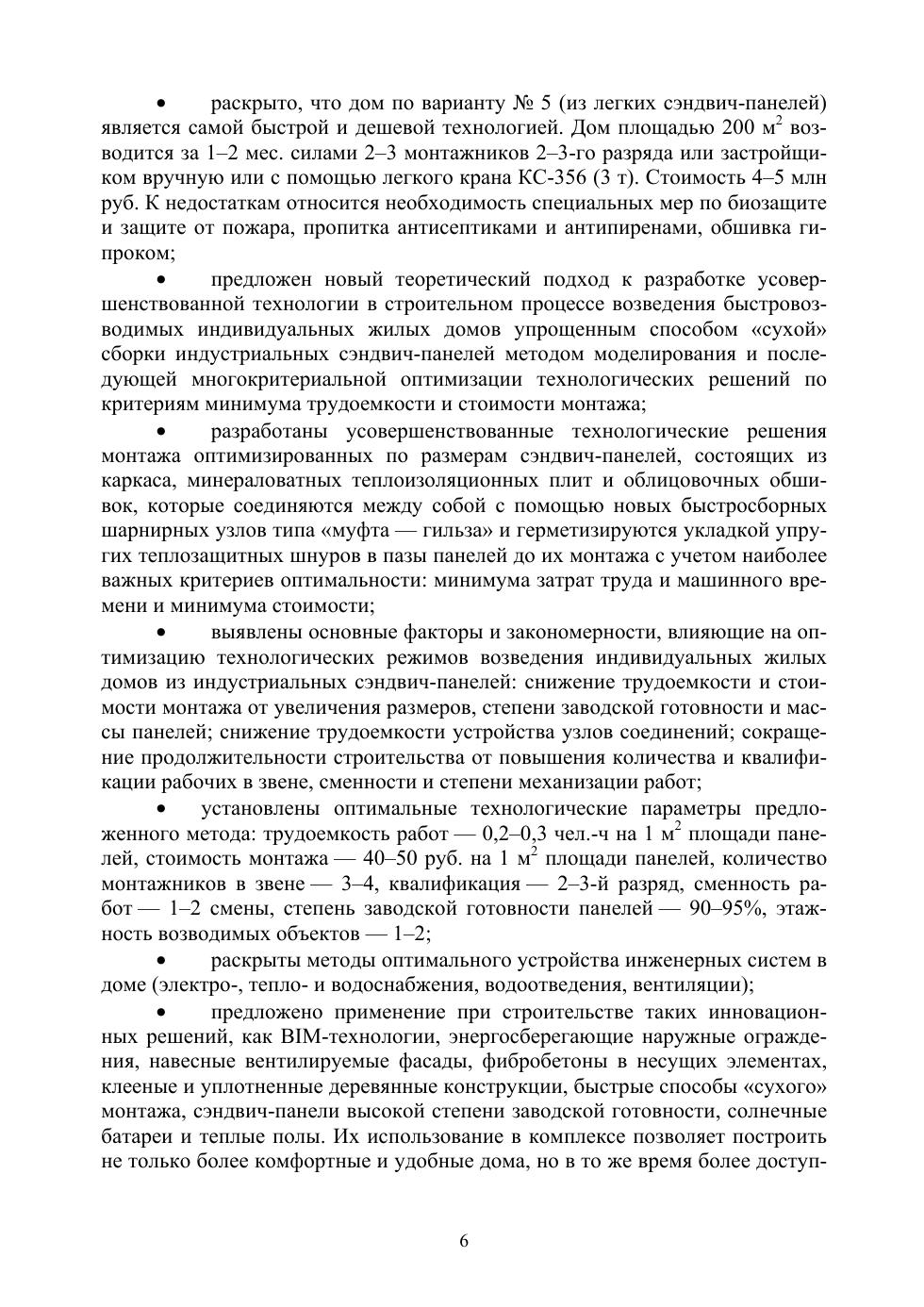 Обоснована важность применения таких инновационных решений, как BIM-технологии, энергосберегающие наружные ограждения, навесные вентилируемые фасады, фибробетоны в несущих элементах, клееные и уплотненные деревянные конструкции, быстрые способы «сухого» монтажа, сэндвич-панели высокой степени заводской готовности, солнечные батареи и теплые полы. Комплексное использование данных инноваций позволяет возводить более комфортные, удобные и в то же время доступные дома, экономичные как при монтаже, так и в процессе эксплуатации.