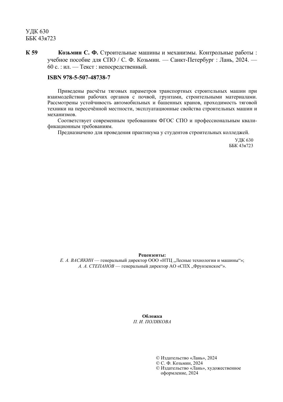 Приведены расчёты тяговых параметров транспортных строительных машин при взаимодействии рабочих органов с почвой, грунтами, строительными материалами. Рассмотрены устойчивость автомобильных и башенных кранов, проходимость тяговой техники на пересечённой местности, эксплуатационные свойства строительных машин и механизмов. Соответствует современным требованиям ФГОС СПО и профессиональным квалификационным требованиям. Предназначено для проведения практикума у студентов строительных колледжей.