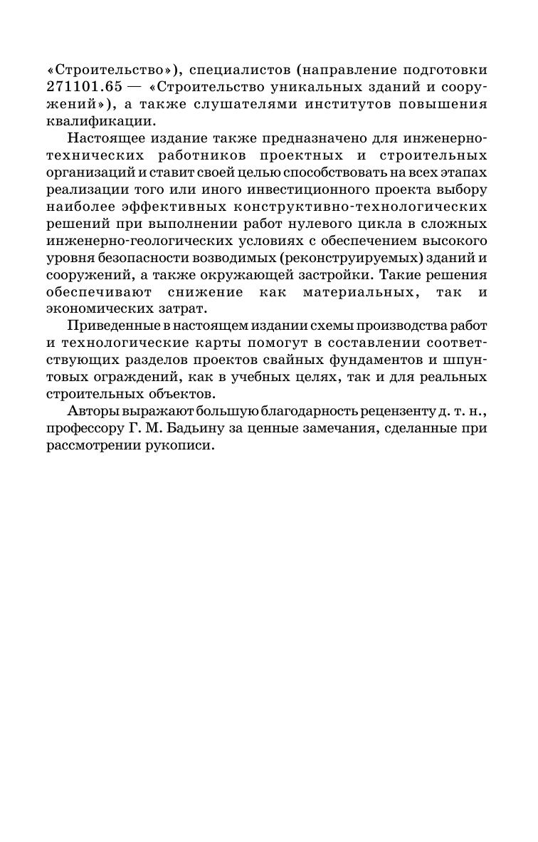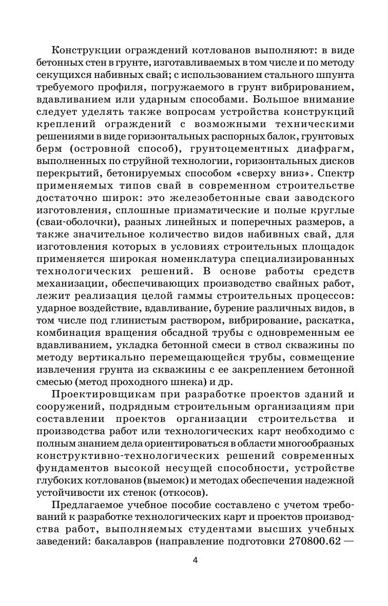 Рассматриваются современные технологии изготовления свай, погружения шпунта и крепления ограждений котлованов. Изложены конструктивно-технологические решения устройства фундаментов глубокого заложения под высотные здания в условиях Санкт-Петербурга. В приложении приводятся технологические карты, нормы расхода материалов при устройстве буронабивных свай, параметры свай заводского изготовления, характеристики копров, буровых установок и вибропогружателей. Издание предназначено для студентов строительных вузов при составлении проектов организации строительства (ПОС) и производства работ (ППР) в сложных инженерно-геологических условиях, а также инженерно-технических работников проектных и строительных организации.