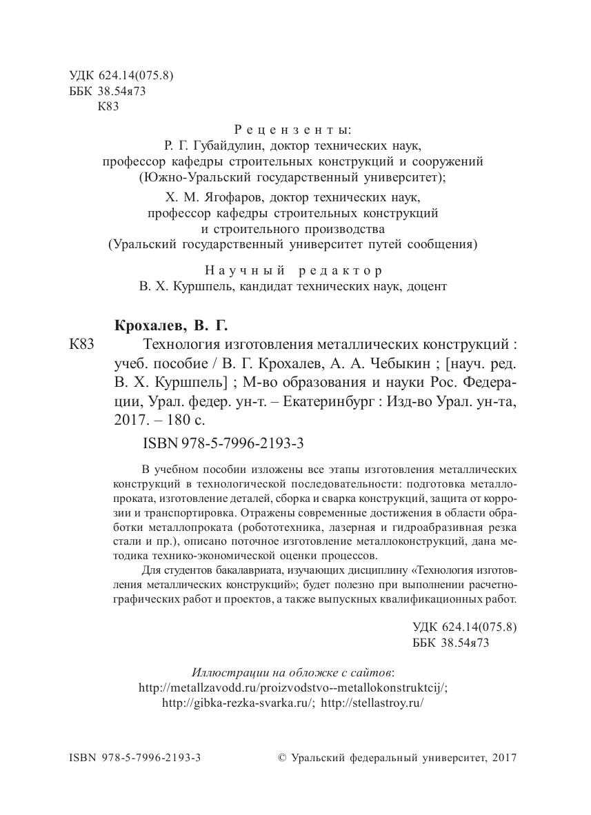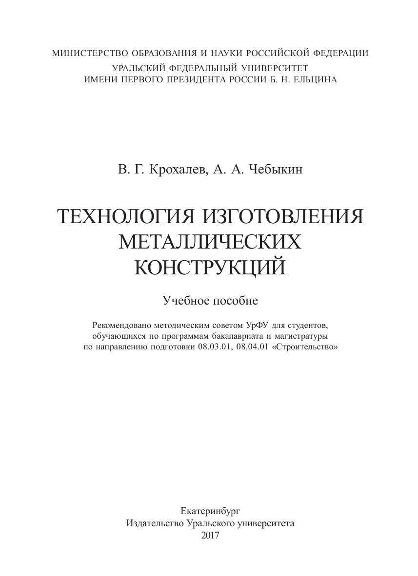 В учебном пособии изложены все этапы изготовления металлических конструкций в технологической последовательности: подготовка металлопроката, изготовление деталей, сборка и сварка конструкций, защита от коррозии и транспортировка. Отражены современные достижения в области обработки металлопроката (робототехника, лазерная и гидроабразивная резка стали и пр.), описано поточное изготовление металлоконструкций, дана методика технико-экономической оценки процессов. Для студентов бакалавриата, изучающих дисциплину «Технология изготовления металлических конструкций»; будет полезно при выполнении расчетно-графических работ и проектов, а также выпускных квалификационных работ.