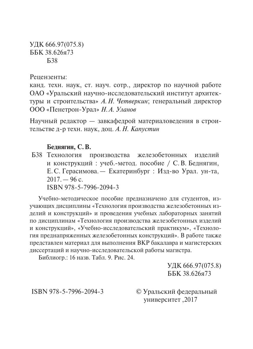Учебно-методическое пособие предназначено для студентов, изучающих дисциплины «Технология производства железобетонных изделий и конструкций» и проведения учебных лабораторных занятий по дисциплинам «Технология производства железобетонных изделий и конструкций», «Учебно-исследовательский практикум», «Технология преднапряженных железобетонных конструкций». В работе также представлен материал для выполнения ВКР бакалавра и магистерских диссертаций и научно-исследовательской работы магистра.