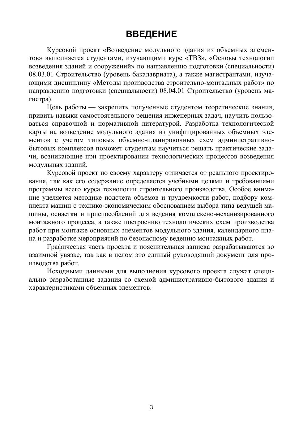 Представлены общие сведения о применении технологии строительства быстровозводимых зданий в Арктике и по технологии возведения модульных зданий из объемных элементов, а также рекомендации к выполнению курсового проекта и раздела выпускной квалификационной работы по разработке технологической карты на возведение модульного здания из объемных элементов. Приводятся методики подсчета объемов работ, трудозатрат, выбора основных машин, оснастки и приспособлений, а также технико-экономическое обоснование принятого варианта работ и мероприятия по вопросам охраны труда. Предназначено для студентов всех форм обучения, обучающихся по направлению подготовки (специальности) «Строительство» (бакалавриат), изучающих дисциплины «Технология возведения зданий, Ч. 1 и Ч. 2», «Основы технологии возведения зданий и сооружений», «Строительство» (уровень магистратура), изучающих дисциплину «Методы производства строительно-монтажных работ».