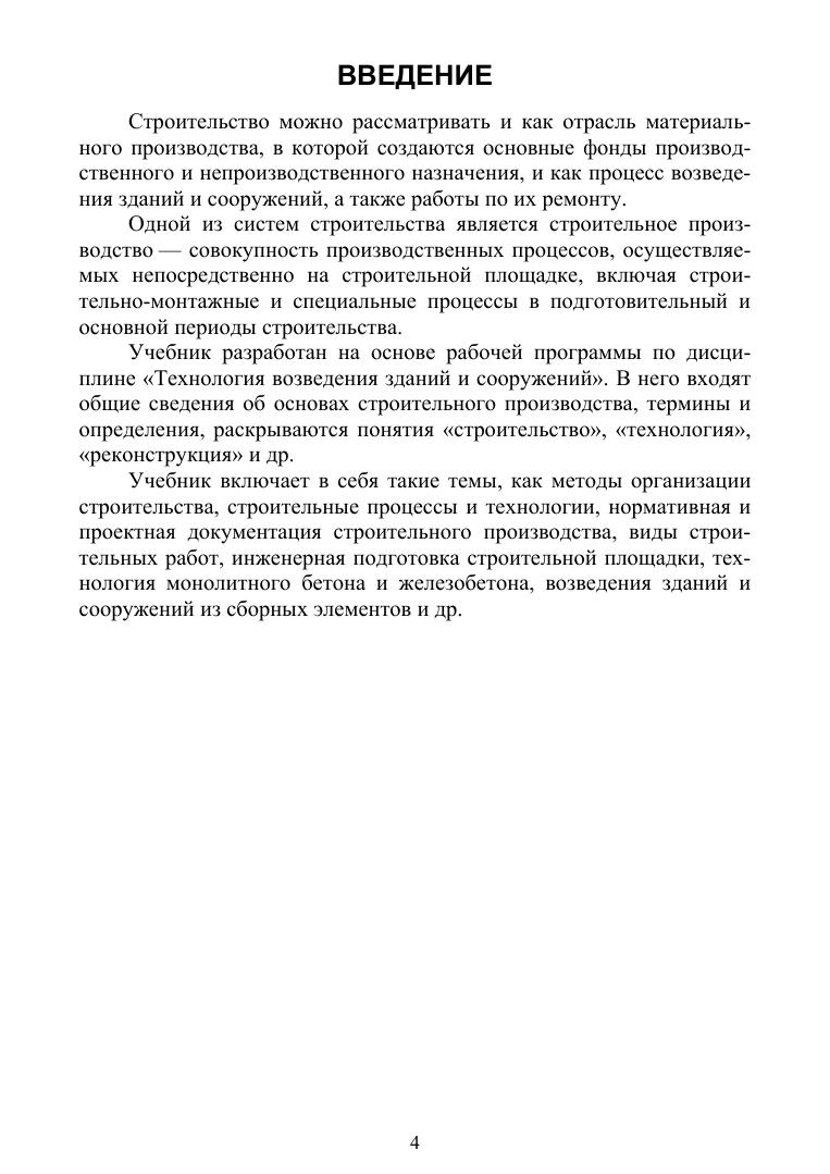 Учебник содержит основные сведения об организации строительства, всех этапах строительных процессов и технологий, нормативной и проектной документации, технологии монтажа строительных конструкций, средствах механизации и автоматизации строительных работ, приемах выполнения монтажных операций, возведении зданий и сооружений из различных материалов. В книге изложены новые энергосберегающие, экономичные и высокоскоростные методы строительства в России. Соответствует современным требованиям Федерального государственного образовательного стандарта среднего профессионального образования и профессиональным квалификационным требованиям. Учебник предназначен для студентов средних профессиональных учебных заведений, обучающихся по специальности «Строительство и эксплуатация зданий и сооружений».