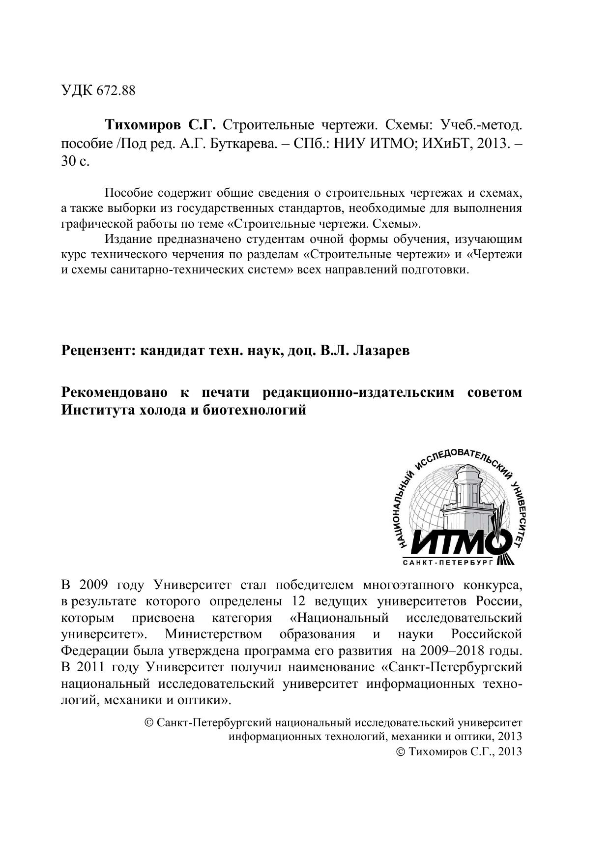 Пособие содержит общие сведения о строительных чертежах и схемах, а также выборки из государственных стандартов, необходимые для выполнения графической работы по теме «Строительные чертежи. Схемы». Издание предназначено студентам очной формы обучения, изучающим курс технического черчения по разделам «Строительные чертежи» и «Чертежи и схемы санитарно-технических систем» всех направлений подготовки.