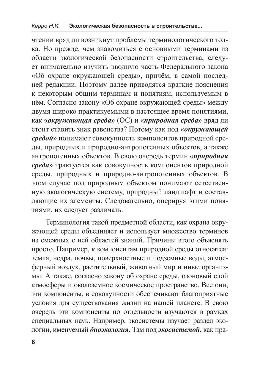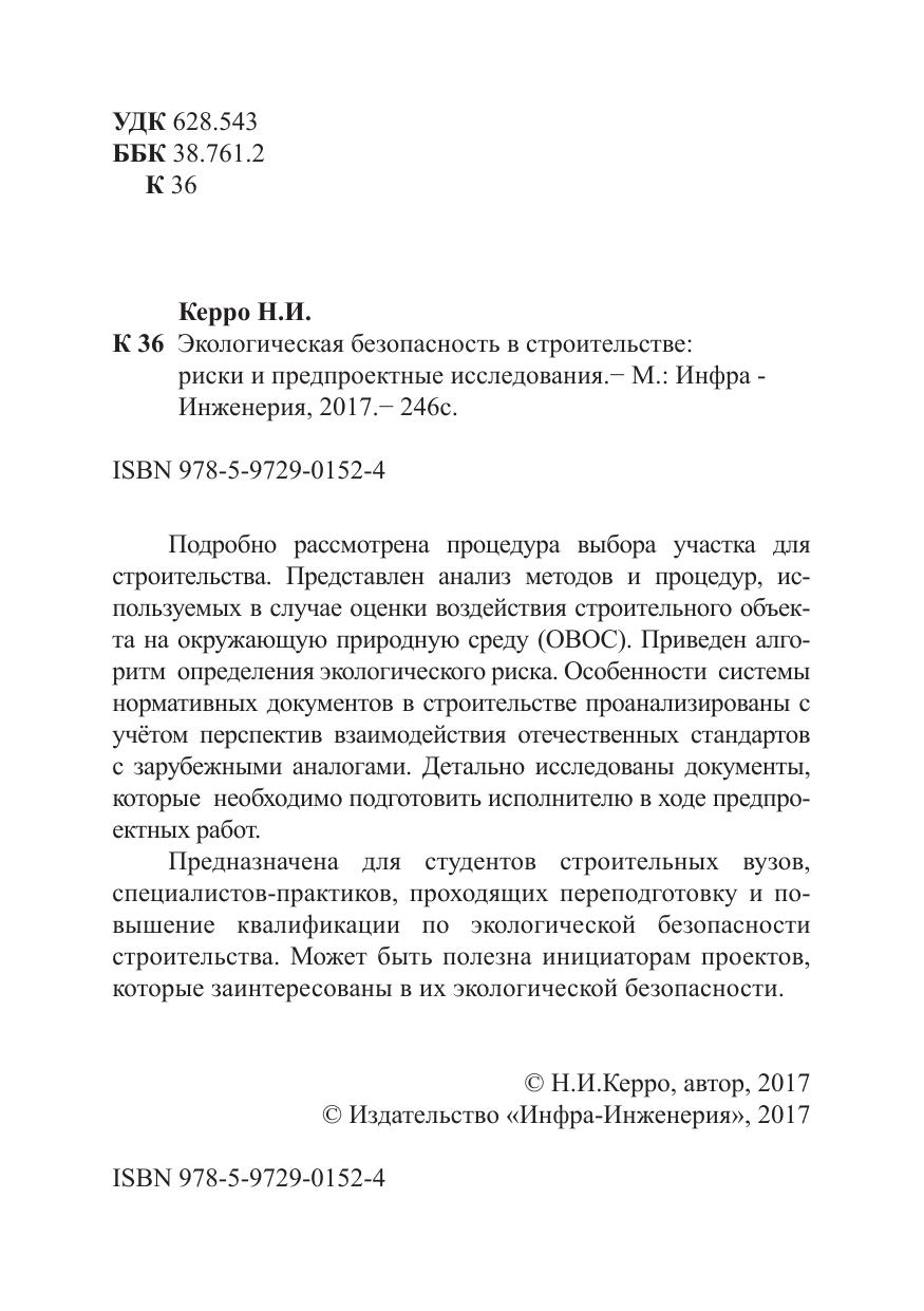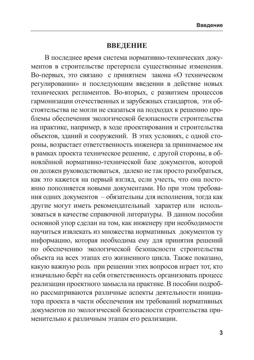 Подробно рассмотрена процедура выбора участка для строительства. Представлен анализ методов и процедур, используемых в случае оценки воздействия строительного объекта на окружающую природную среду (ОВОС). Приведен алгоритм определения экологического риска. Особенности системы нормативных документов в строительстве проанализированы с учётом перспектив взаимодействия отечественных стандартов с зарубежными аналогами. Детально исследованы документы, которые необходимо подготовить исполнителю в ходе предпроектных работ. Предназначена для студентов строительных вузов, специалистов-практиков, проходящих переподготовку и повышение квалификации по экологической безопасности строительства. Может быть полезна инициаторам проектов, которые заинтересованы в их экологической безопасности.