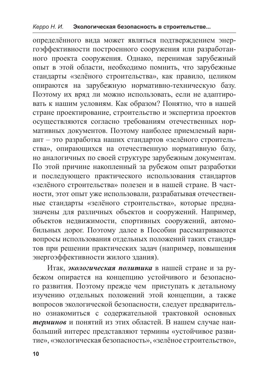 Рассмотрена концепция устойчивого и безопасного развития применительно к строительной отрасли. Произведен анализ новейших нормативных документов, государственных и международных стандартов и правил, которыми следует руководствоваться заказчику, исполнителю и проектировщику в строительстве. Освещены важные аспекты сертификации строительных и связанных с ними объектов. Рассмотрены справочники, каталоги и рекомендации, которые могут быть использованы при реализации норм стандартов в ходе создания и реализации проекта. Для студентов строительных вузов, специалистов-практиков, проходящих переподготовку и повышение квалификации по экологической безопасности строительства. Может быть полезно инициаторам проектов, которые заинтересованы в их экологической безопасности и соблюдении новейших государственных стандартов.