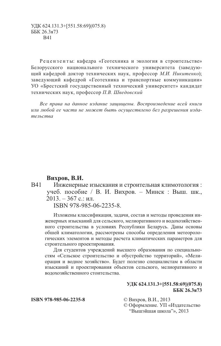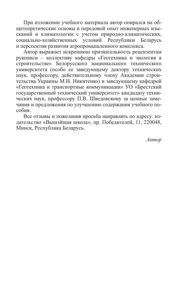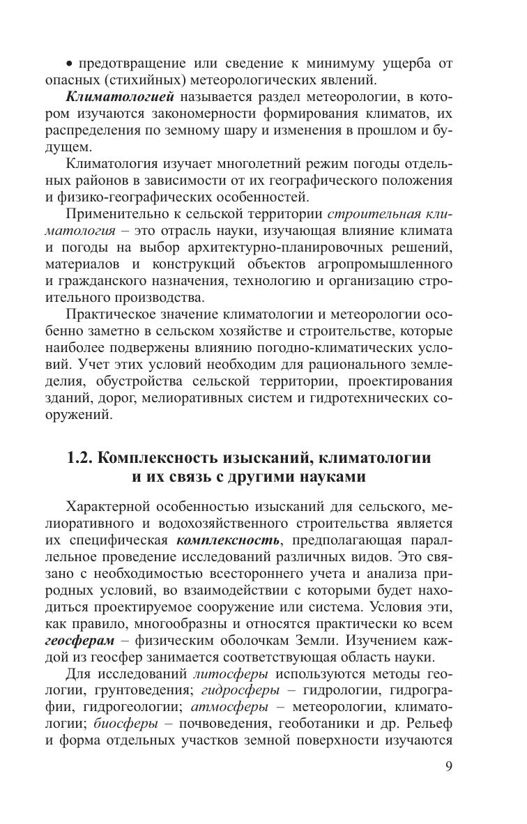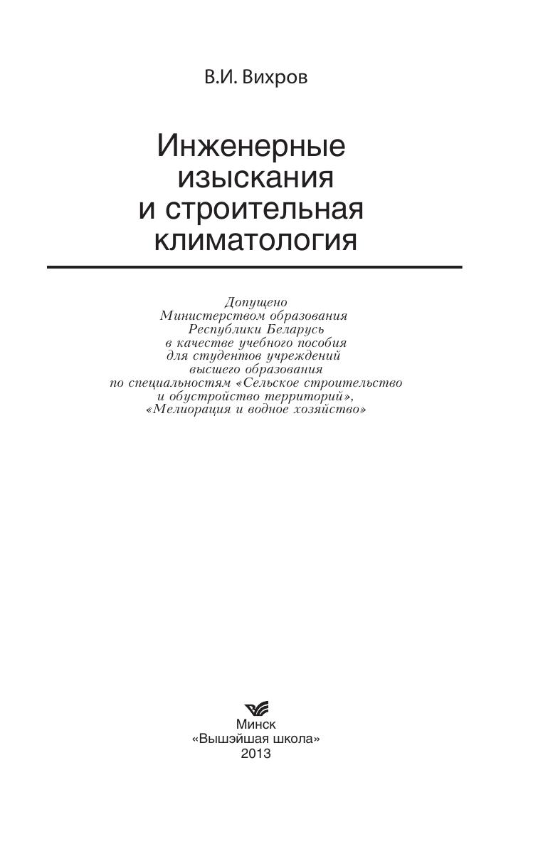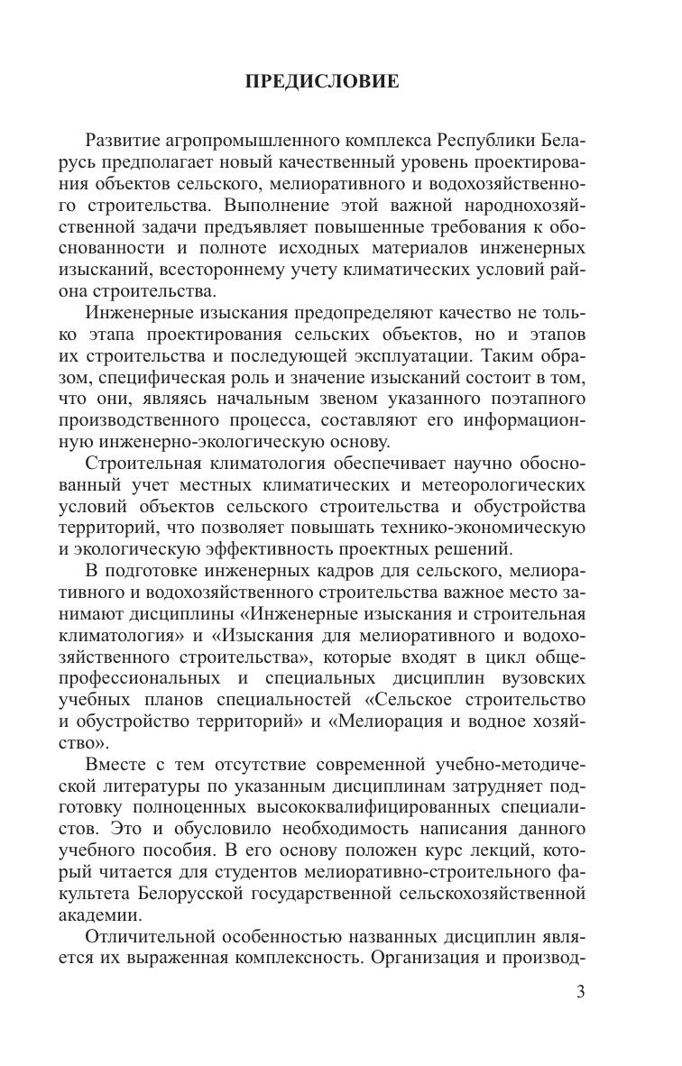Изложены общие сведения об инженерных изысканиях и строительной климатологии. Приведена классификация комплексных изысканий для сельского, мелиоративного и водохозяйственного строительства, организация изыскательских работ. Рассмотрены задачи, состав, методы и средства проведения инженерных и других видов изысканий с учетом природно-климатических условий Республики Беларусь. Даны основы общей климатологии, методы и средства определения основных метеорологических факторов, составляющие основу получения климатологической информации. Приведен состав, область применения и методы расчета климатических параметров для строительного проектирования. Для студентов вузов по специальностям "Сельское строительство и обустройство территорий, "Мелиорация и водное хозяйство". Будет полезно специалистам в области изысканий и проектирования объектов сельского, мелиоративного и водохозяйственного строительства