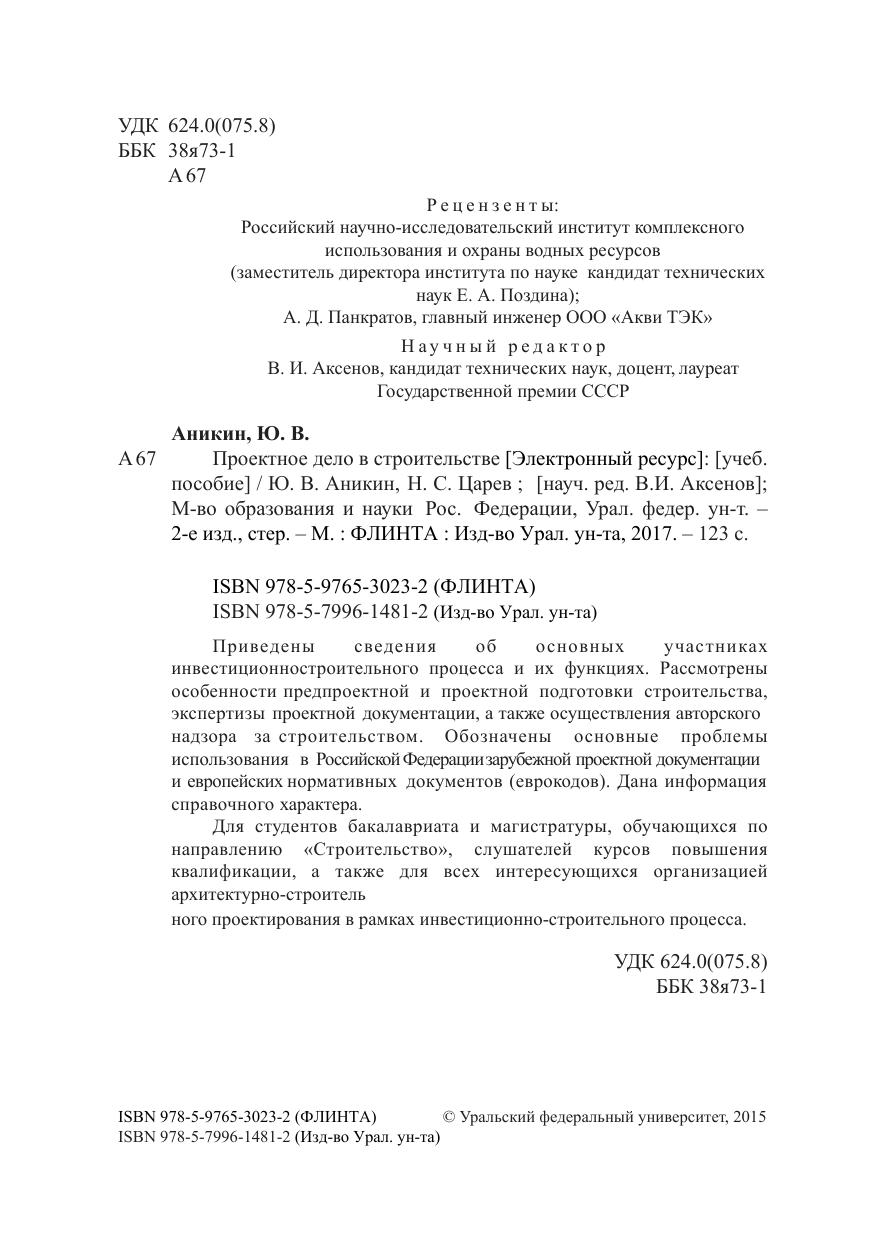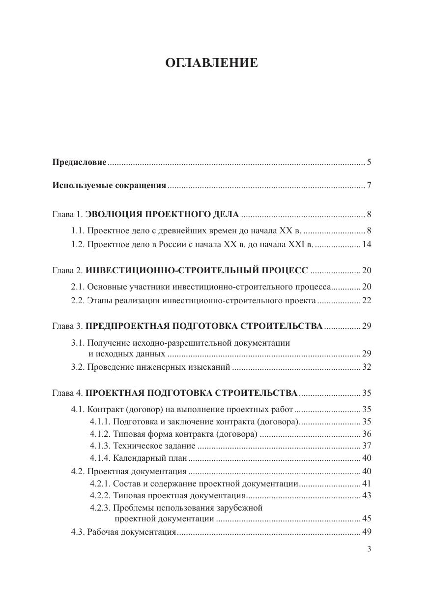 Приведены сведения об основных участниках инвестиционно-строительного процесса и их функциях. Рассмотрены особенности предпроектной и проектной подготовки строительства, экспертизы проектной документации, а также осуществления авторского надзора за строительством. Обозначены основные проблемы использования в российской Федерации зарубежной проектной документации и европейских нормативных документов (еврокодов). Дана информация справочного характера. Для студентов бакалавриата и магистратуры, обучающихся по направлению «строительство», слушателей курсов повышения квалификации, а также для всех интересующихся организацией архитектурно-строительного проектирования в рамках инвестиционно-строительного процесса.