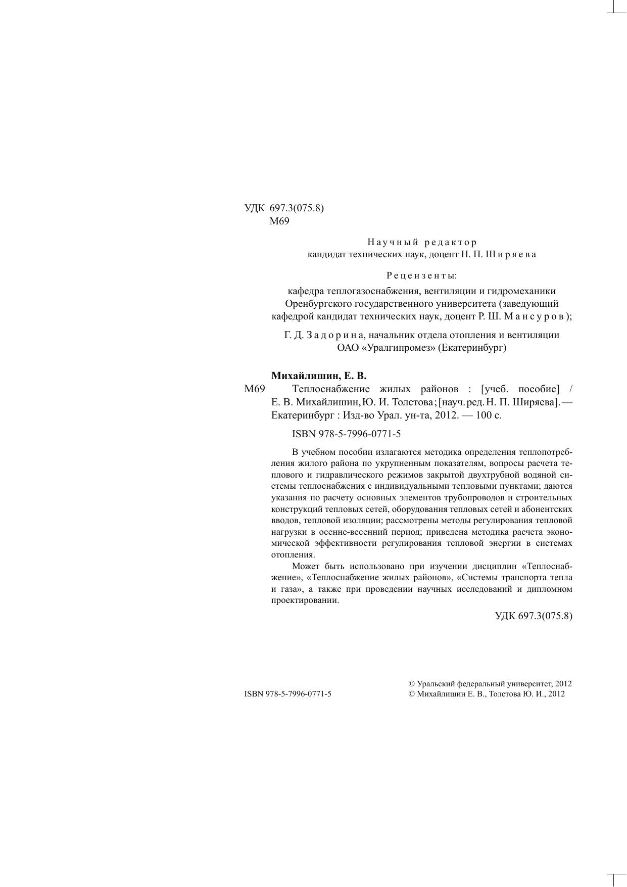 В учебном пособии излагаются методика определения теплопотребления жилого района по укрупненным показателям, вопросы расчета теплового и гидравлического режимов закрытой двухтрубной водяной системы теплоснабжения с индивидуальными тепловыми пунктами; даются указания по расчету основных элементов трубопроводов и строительных конструкций тепловых сетей, оборудования тепловых сетей и абонентских вводов, тепловой изоляции; рассмотрены методы регулирования тепловой нагрузки в осенне-весенний период; приведена методика расчета экономической эффективности регулирования тепловой энергии в системах отопления.