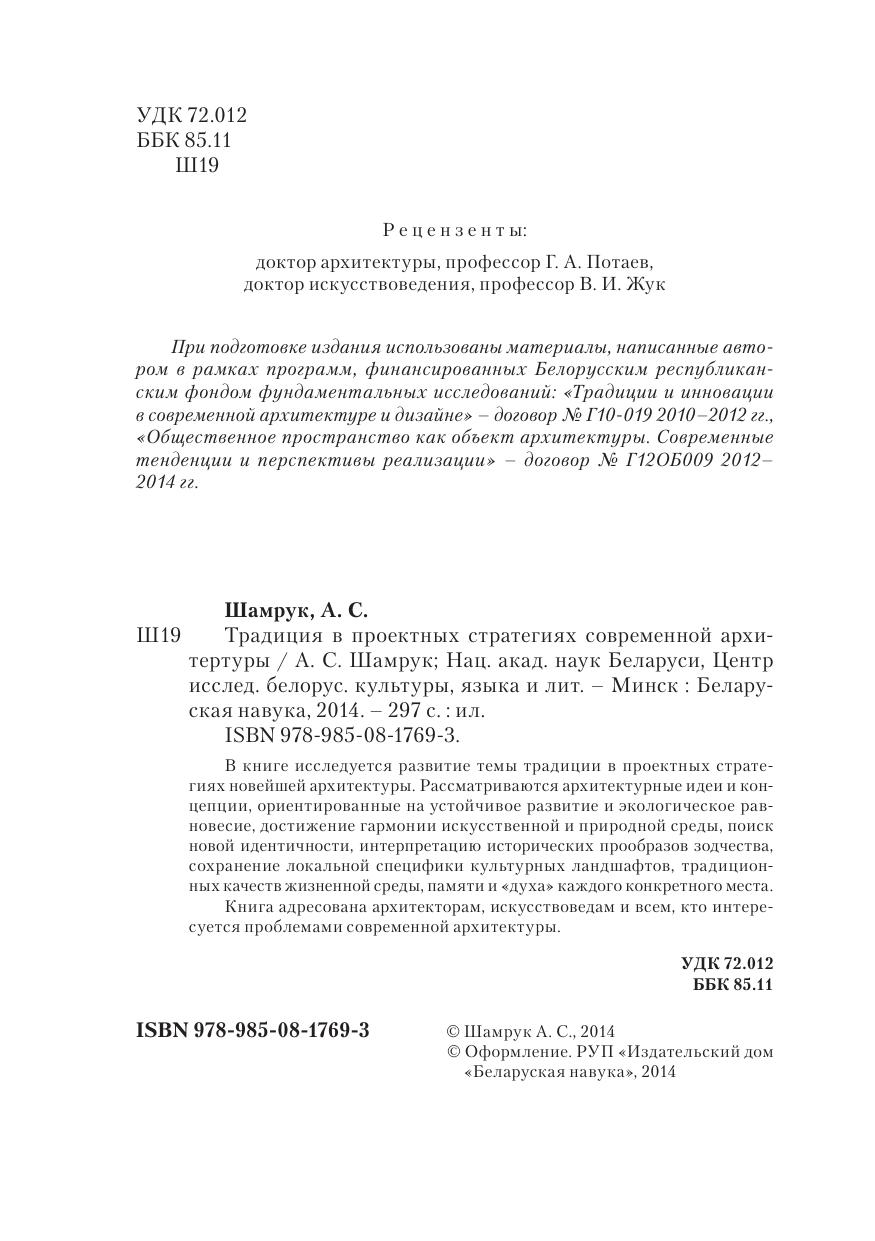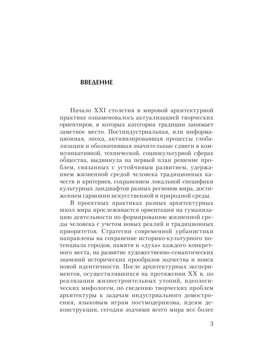 В книге исследуется развитие темы традиции в проектных стратегиях новейшей архитектуры. Рассматриваются архитектурные идеи и концепции, ориентированные на устойчивое развитие и экологическое равновесие, достижение гармонии искусственной и природной среды, поиск новой идентичности, интерпретацию исторических прообразов зодчества, сохранение локальной специфики культурных ландшафтов, традиционных качеств жизненной среды, памяти и «духа» каждого конкретного места. Книга адресована архитекторам, искусствоведам и всем, кто интересуется проблемами современной архитектуры.