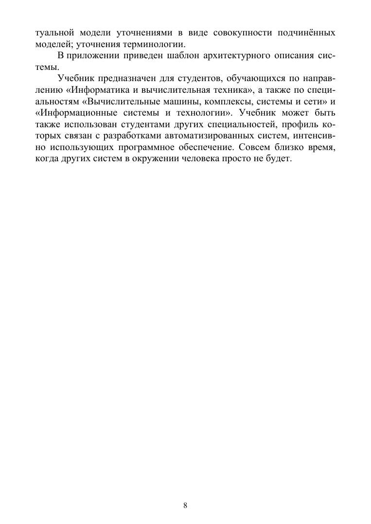 Настоящий учебник предназначен для обучающихся средних профессиональных учреждений по профессиям и специальностям профилей подготовки «Информатика и вычислительная техника», «Информационная безопасность» с целью освоения принципов создания автоматизированных компьютерных систем. Раскрываются основные понятия сферы разработки архитектуры программных систем, специфика предметной области, стандарты и нормативы, а также типовые проблемные вопросы архитектурного моделирования систем. В учебнике в сжатой систематизированной форме представлены теоретические материалы, приведены контрольные вопросы и задания, а также практико-ориентированный отраслевой шаблон по описанию архитектуры программной системы. Соответствует современным требованиям Федерального государственного образовательного стандарта среднего профессионального образования и профессиональным квалификационным требованиям. Учебник может быть также использован обучающимися других специальностей и направлений подготовки, профиль которых связан с изучением вопросов разработки моделей автоматизированных систем и основ проектирования сложных компьютерных систем.