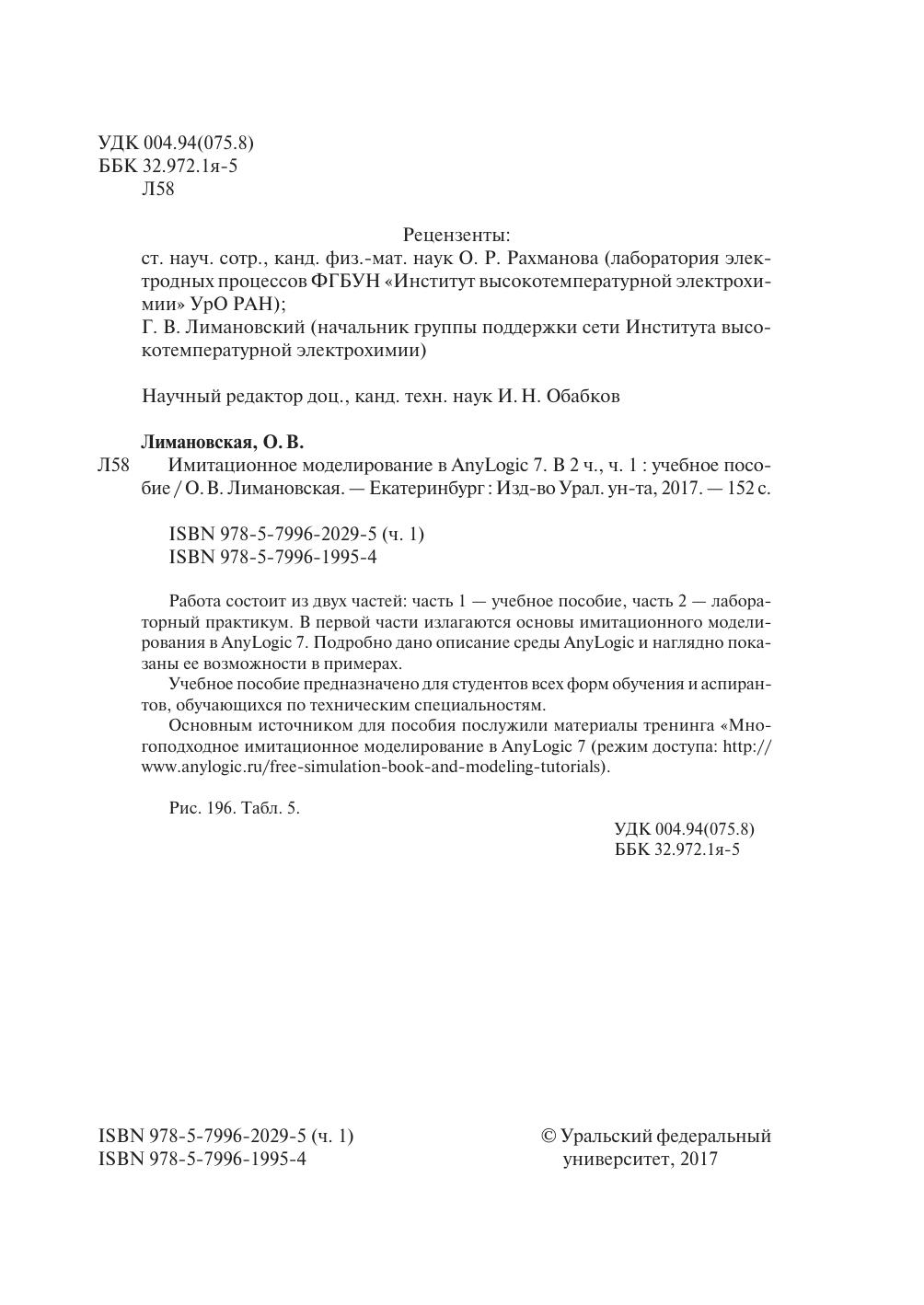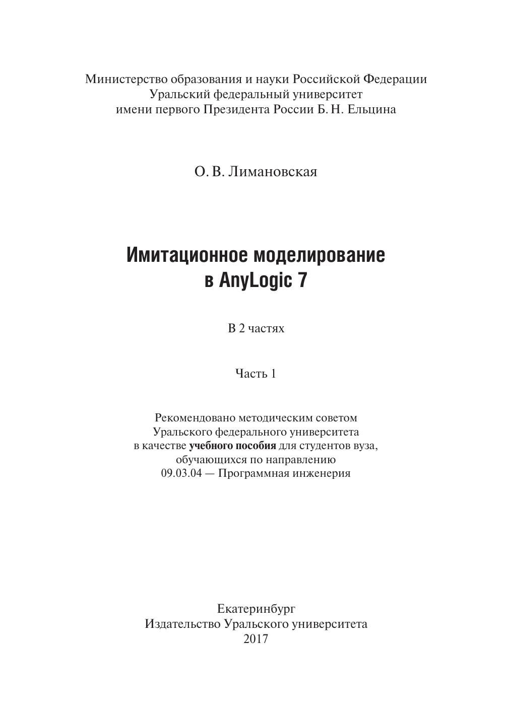 Работа состоит из двух частей: часть 1 — учебное пособие, часть 2 — лабораторный практикум. В первой части излагаются основы имитационного моделирования в AnyLogic 7. Подробно дано описание среды AnyLogic и наглядно показаны ее возможности в примерах. Учебное пособие предназначено для студентов всех форм обучения и аспирантов, обучающихся по техническим специальностям. Основным источником для пособия послужили материалы тренинга «Многоподходное имитационное моделирование в AnyLogic 7
