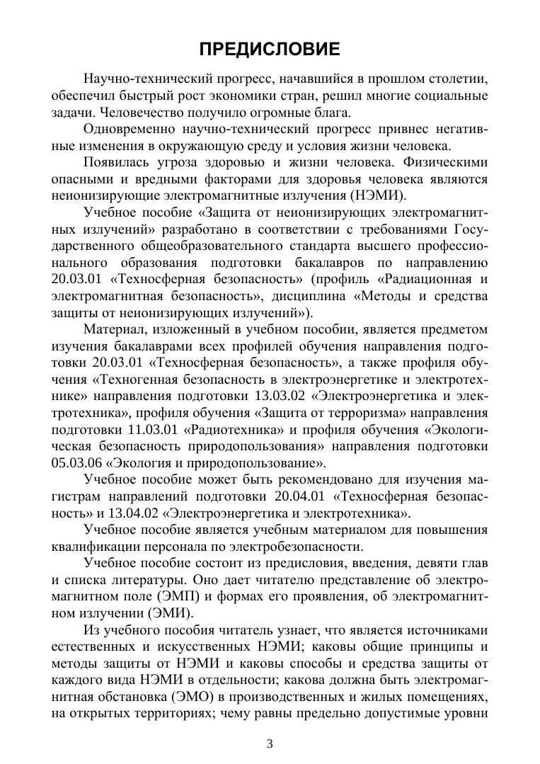 Рассмотрены разделы направления подготовки «Безопасность жизнедеятельности» бакалавров и магистров, которые касаются защиты человека от неионизирующих электромагнитных излучений. Описаны источники естественных и техногенных электромагнитных полей. Указаны общие принципы и методы защиты человека от неионизирующих электромагнитных излучений, а также способы и средства защиты от каждого вида неионизирующих электромагнитных излучений в отдельности. Приведены предельно допустимые уровни параметров электромагнитных полей, которые гарантируют безопасность человека и обеспечивают благоприятные условия его жизнедеятельности. Рекомендованы средства измерения, позволяющие контролировать параметры электромагнитных полей в окружающей среде. Учебное пособие предназначено для студентов высших учебных заведений, преподавателей, аспирантов, научных и технических работников, а также широкого круга читателей, интересующихся проблемами безопасности человека в электромагнитных полях.