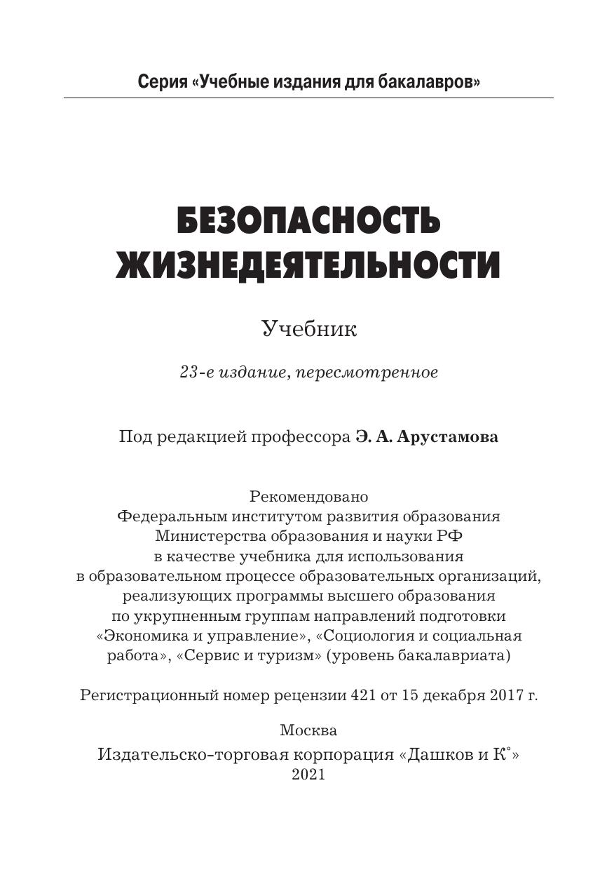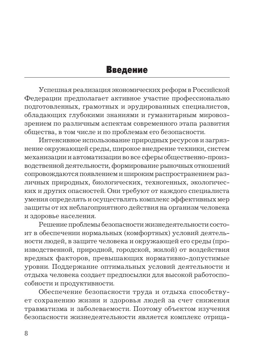 Учебник написан в соответствии с федеральными государственными образовательными стандартами для экономических, социальных и гуманитарных направлений подготовки. Рассмотрены вопросы обеспечения безопасности жизнедеятельности человека в производственной, природной и жилой среде, безопасности и экологичности технических систем, организации защиты населения и территорий в чрезвычайных ситуациях, а также управления и правового регулирования безопасности жизнедеятельности. Для студентов бакалавриата, преподавателей, административных работников, управленческого персонала, предпринимателей, а также читателей, интересующихся и занимающихся проблемами обеспечения безопасности человека.