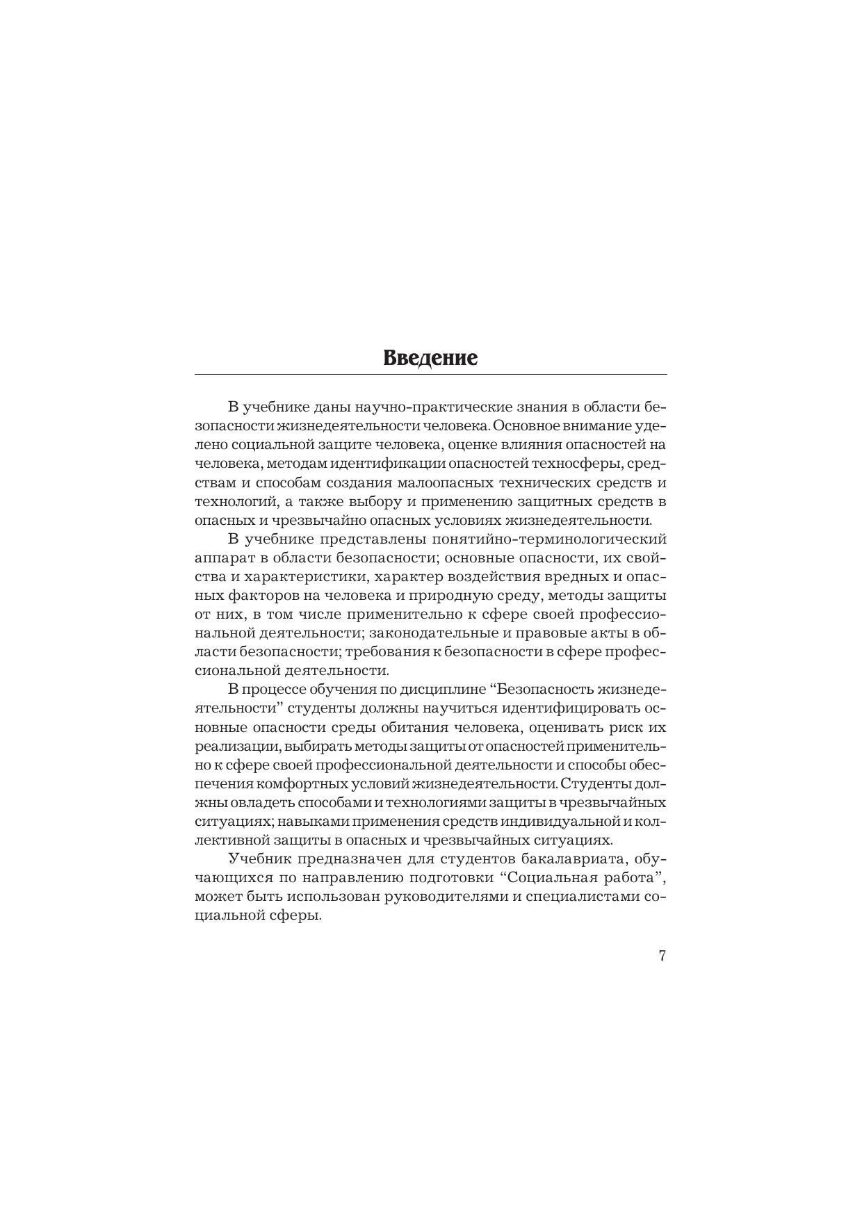 Для студентов бакалавриата, обучающихся по направлениям подготовки “Социальная работа”, “Сервис”, “Туризм”, “Государственное и муниципальное управление”, руководителей и специалистов социальной сферы, а также всех, кто интересуется проблемами безопасности жизнедеятельности.