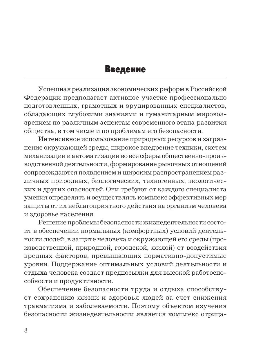 Учебник написан в соответствии с федеральными государственными образовательными стандартами для экономических, социальных и гуманитарных направлений подготовки. Рассмотрены вопросы обеспечения безопасности жизнедеятельности человека в производственной, природной и жилой среде, безопасности и экологичности технических систем, организации защиты населения и территорий в чрезвычайных ситуациях, а также управления и правового регулирования безопасности жизнедеятельности. Для студентов бакалавриата, преподавателей, административных работников, управленческого персонала, предпринимателей, а также читателей, интересующихся и занимающихся проблемами обеспечения безопасности человека.