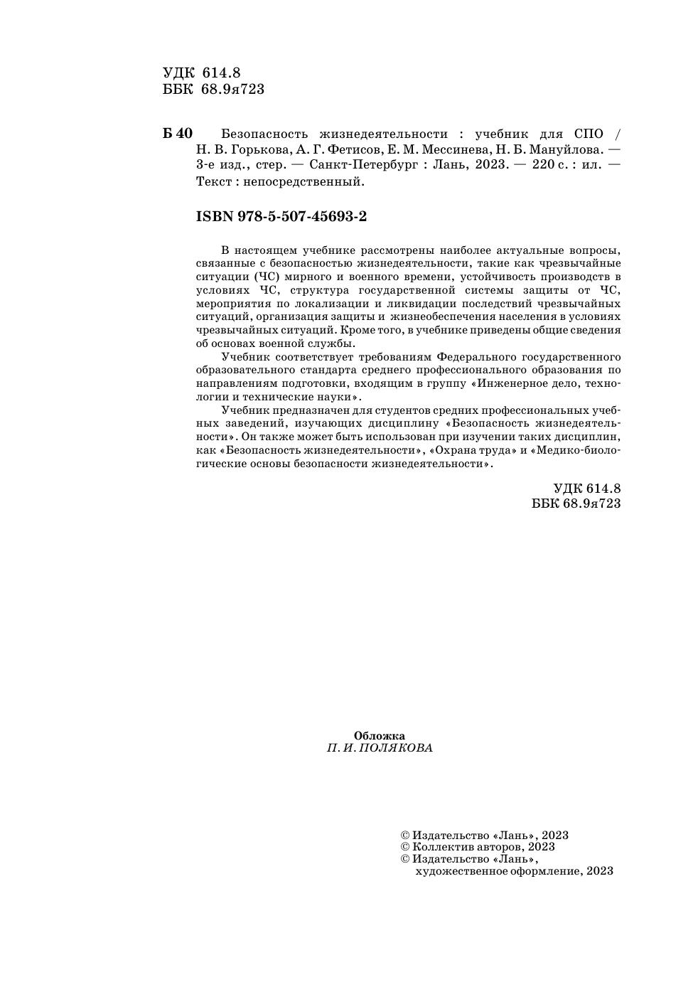 В настоящем учебнике рассмотрены наиболее актуальные вопросы, связанные с безопасностью жизнедеятельности, такие как чрезвычайные ситуации (ЧС) мирного и военного времени, устойчивость производств в условиях ЧС, структура государственной системы защиты от ЧС, мероприятия по локализации и ликвидации последствий чрезвычайных ситуаций, организация защиты и жизнеобеспечения населения в условиях чрезвычайных ситуаций. Кроме того, в учебнике приведены общие сведения об основах военной службы. Учебник соответствует требованиям Федерального государственного образовательного стандарта среднего профессионального образования по направлениям подготовки, входящим в группу «Инженерное дело, технологии и технические науки». Учебник предназначен для студентов средних профессиональных учебных заведений, изучающих дисциплину «Безопасность жизнедеятельности». Он также может быть использован при изучении таких дисциплин, как «Безопасность жизнедеятельности», «Охрана труда» и «Медико-биологические основы безопасности жизнедеятельности».