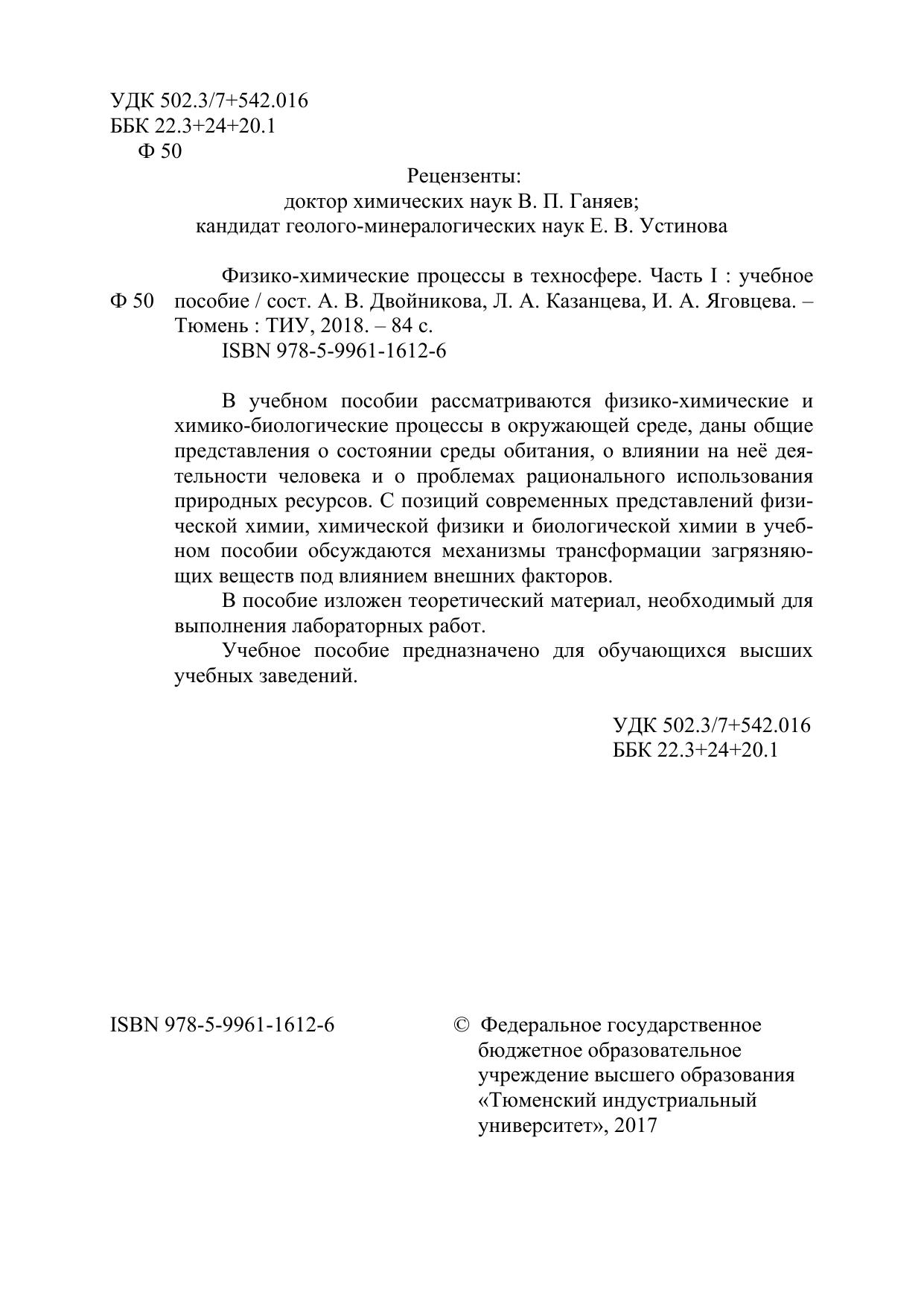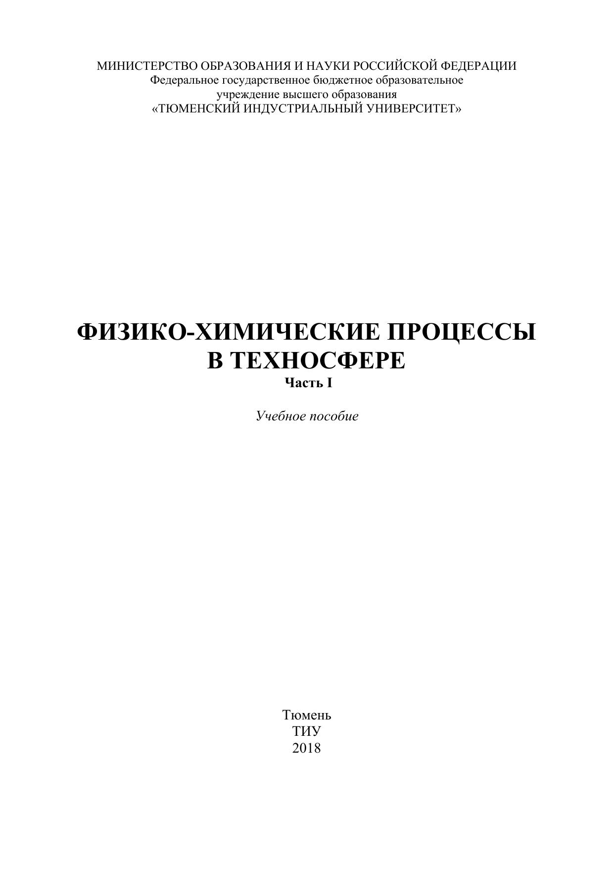 Физико-химические процессы в техносфере. Часть I