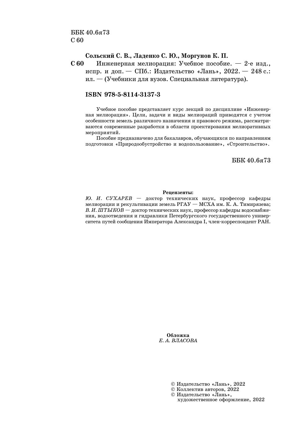 Учебное пособие представляет курс лекций по дисциплине «Инженерная мелиорация». Цели, задачи и виды мелиораций приводятся с учетом особенности земель различного назначения и правового режима, рассматриваются современные разработки в области проектирования мелиоративных мероприятий. Пособие предназначено для бакалавров, обучающихся по направлениям подготовки «Природообустройство и водопользование», «Строительство».