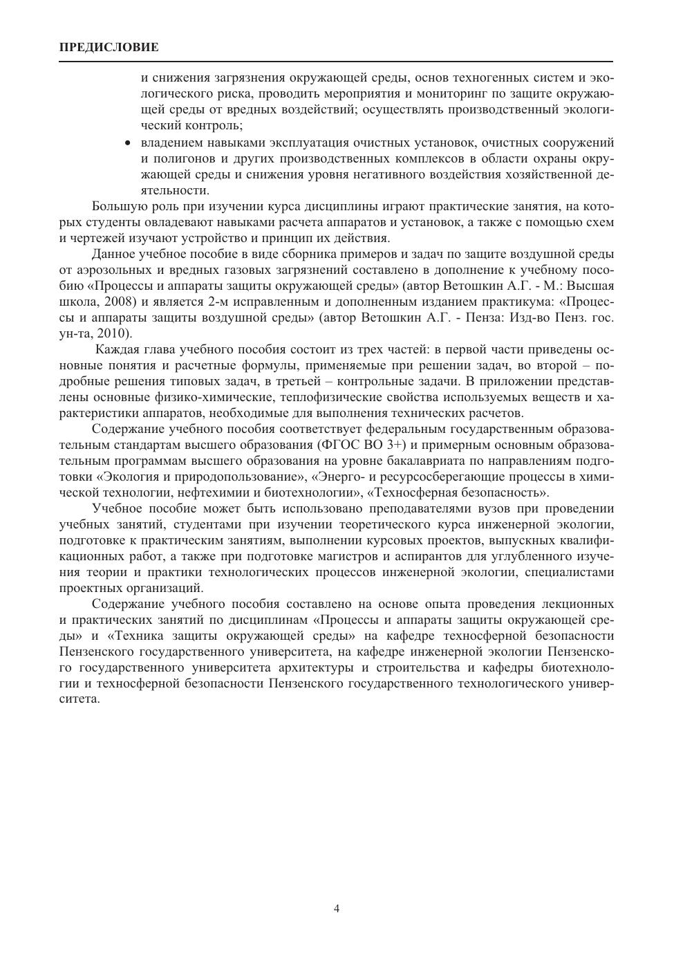 Для студентов, обучающихся на уровне бакалавриата по направлениям подготовки 20.03.01 «Техносферная безопасность», 05.03.06 «Экология и природопользование», 18.03.02 «Энерго- и ресурсосберегающие процессы в химической технологии, нефтехимии и биотехнологии», а также преподавателей и специалистов проектных организаций. Может быть использовано при изучении дисциплин «Экология» и «Безопасность жизнедеятельности» других направлений подготовки, а также при подготовке магистров, аспирантов.