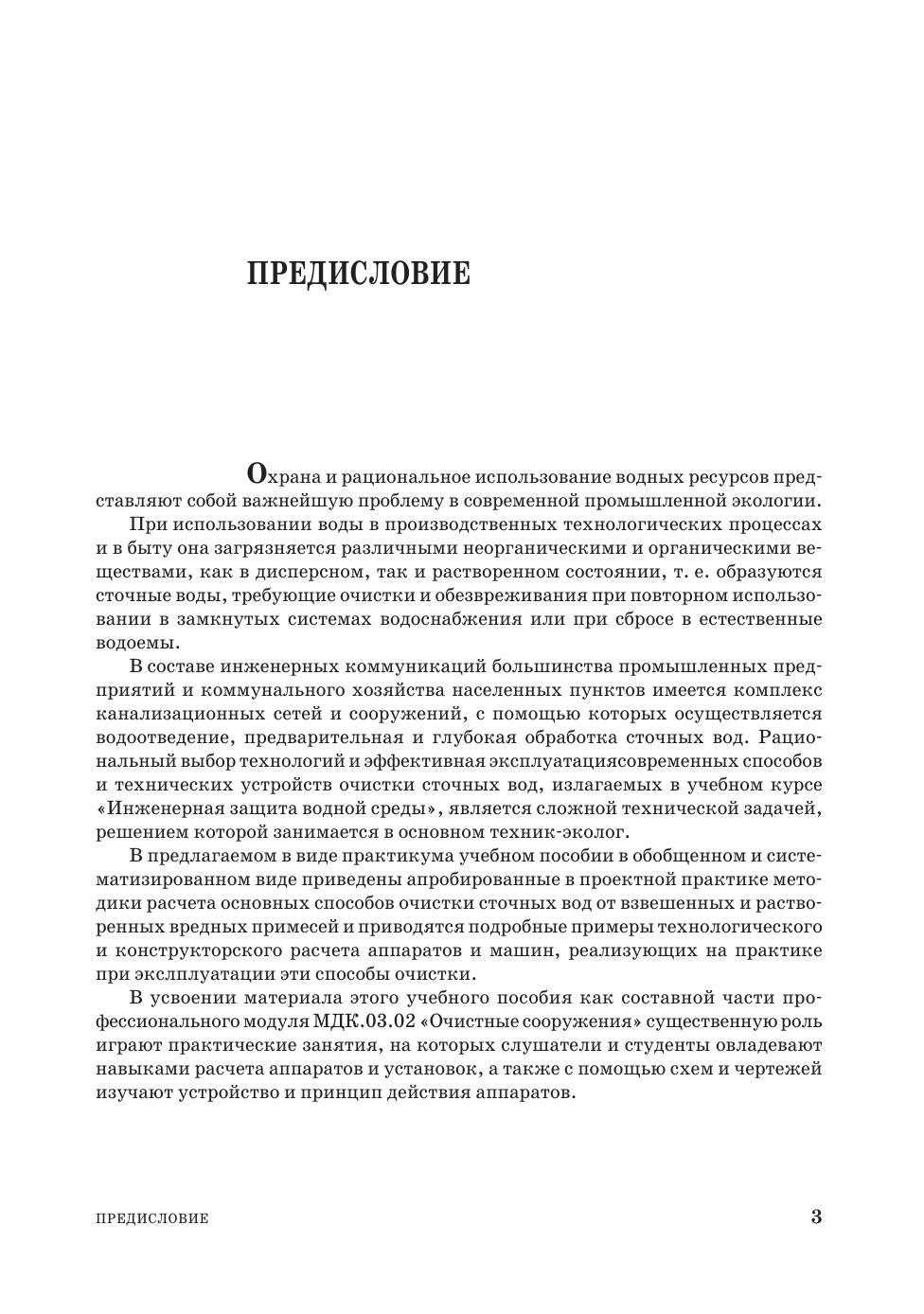 В практикуме приведены основные конструкции, схемы, методы и формулы для расчета аппаратов, машин и установок технологии защиты гидросферы от дисперсных и растворенных неорганических и органических веществ: сооружения механической очистки сточных вод, включая отстойники и фильтры; сооружения физико-химической очистки сточных вод, включающие коагуляторы, флотаторы, экстракторы, адсорберы и ионообменные установки, мембранное оборудование и электрохимические установки; сооружения биохимической очистки в составе аэротенки, биофильтры и биологические пруды; оборудование для химической очистки сточных вод, включая нейтрализаторы, хлораторы и озонаторы, установки жидкофазного окисления; оборудование для термической обработки сточных вод в составе ректификационные установки, кристаллизаторы и выпарные установки. Приведен оригинальный новый материал по сепарации пены. Даны подробные решения типовых примеров и контрольные задачи.