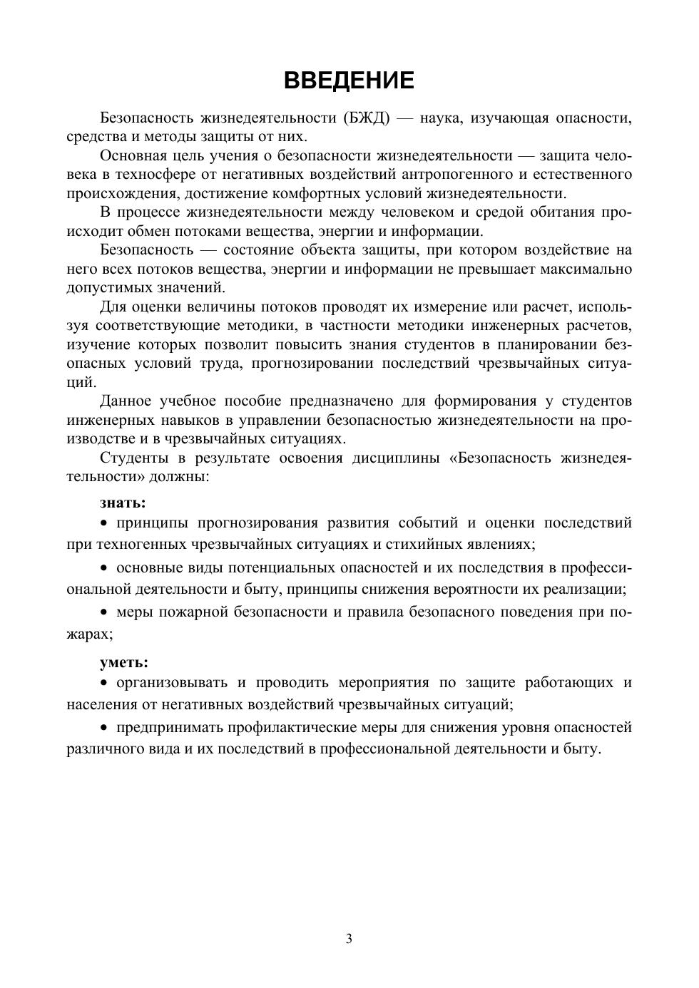 Рассматриваются методики инженерных расчетов вредных и опасных факторов в системе «человек — производственная среда» и в чрезвычайных ситуациях мирного и военного времени. Соответствует современным требованиям Федерального государственного образовательного стандарта среднего профессионального образования и профессиональным квалификационным требованиям. Предназначено для проведения практических занятий по дисциплине «Безопасность жизнедеятельности» в среднетехнических учебных заведениях.