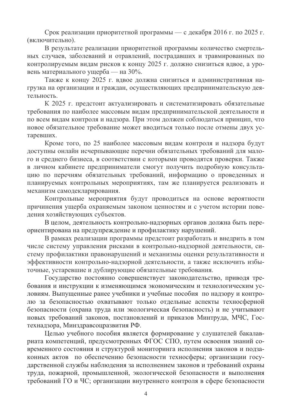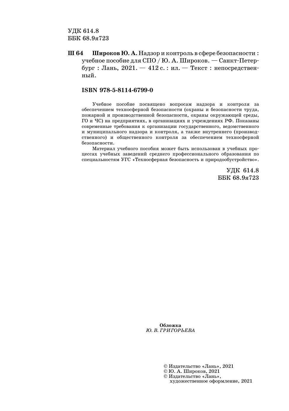 Учебное пособие посвящено вопросам надзора и контроля за обеспечением техносферной безопасности (охраны и безопасности труда, пожарной и производственной безопасности, охраны окружающей среды, ГО и ЧС) на предприятиях, в организациях и учреждениях РФ. Показаны современные требования к организации государственного, ведомственного и муниципального надзора и контроля, а также внутреннего (производственного) и общественного контроля за обеспечением техносферной безопасности.