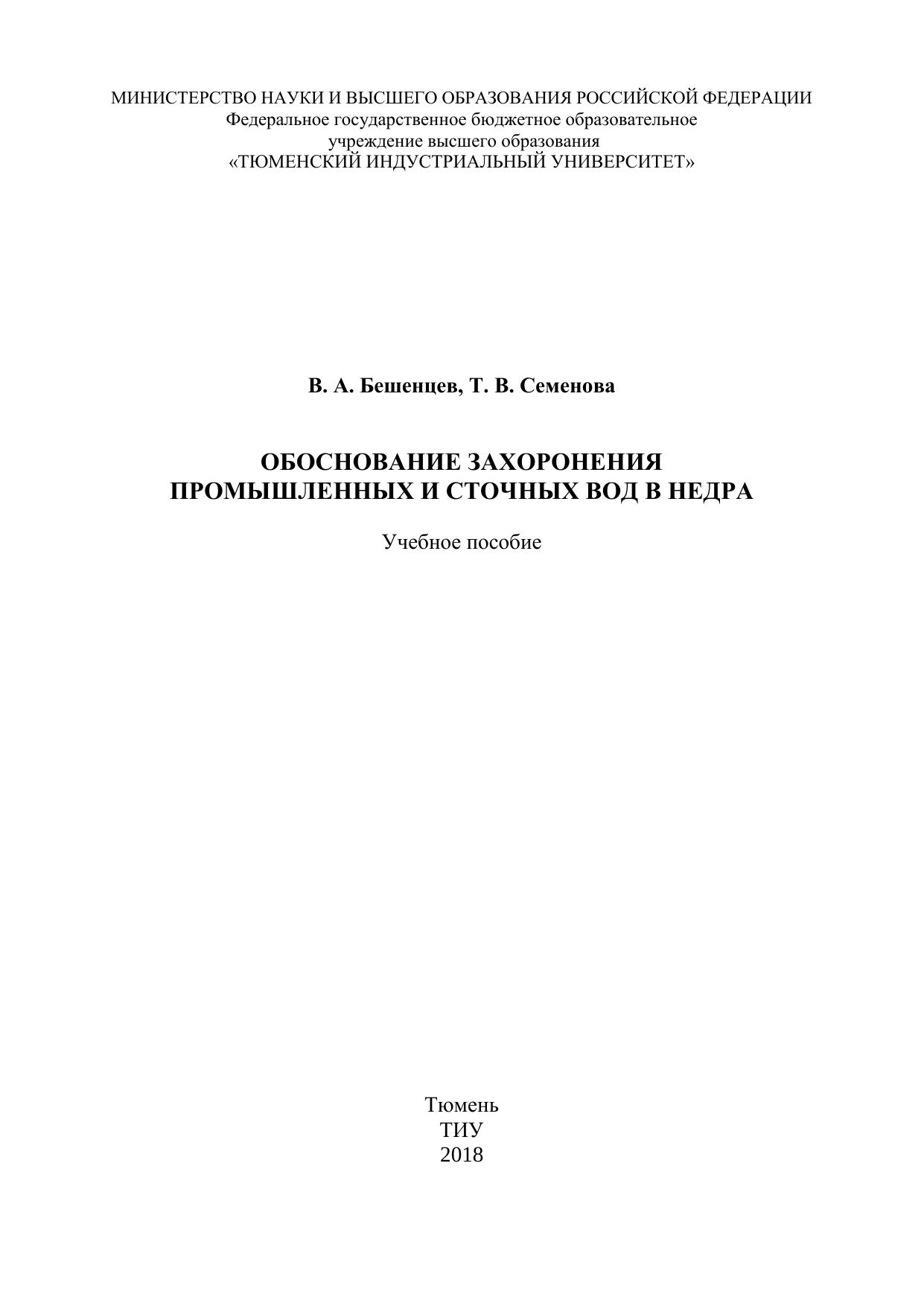 Авторы: Бешенцев В. А., Семенова Т. В.