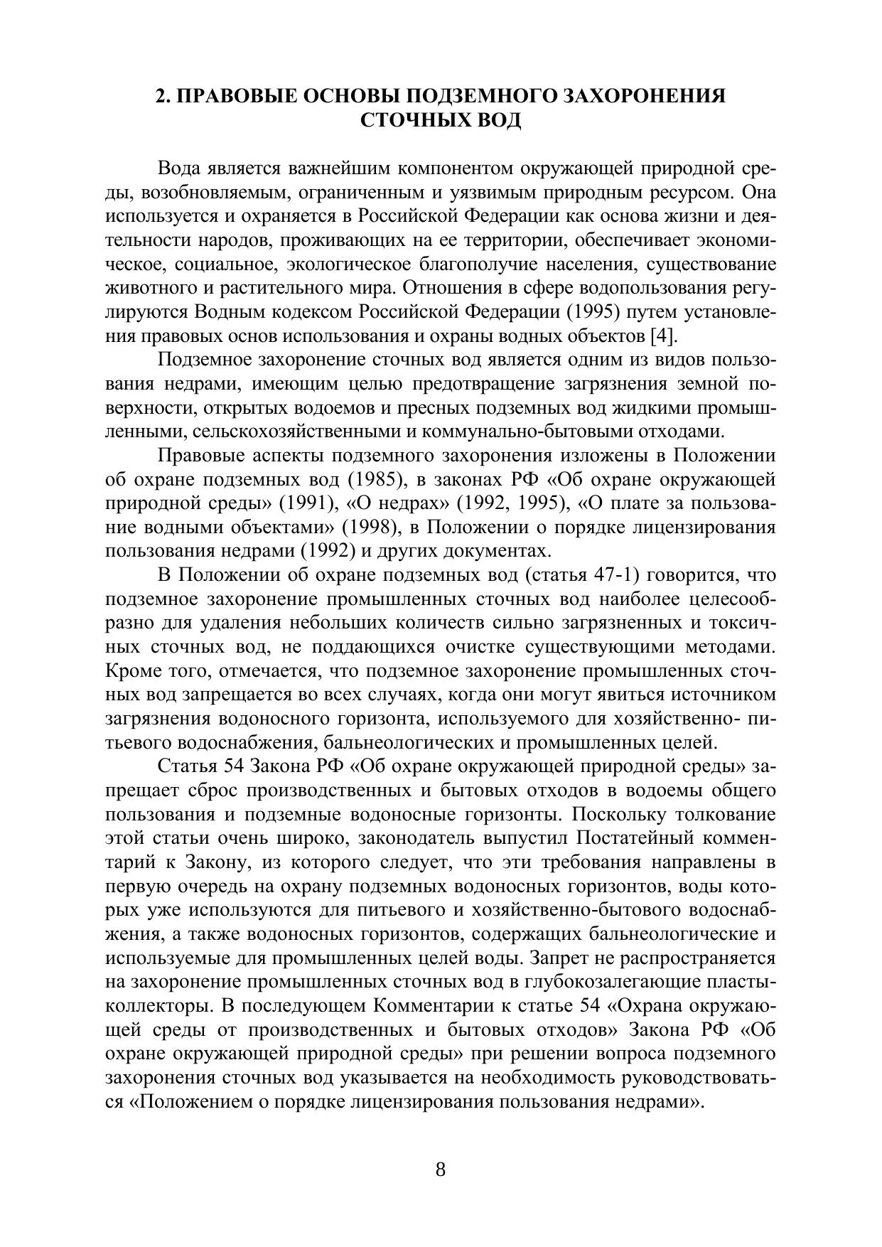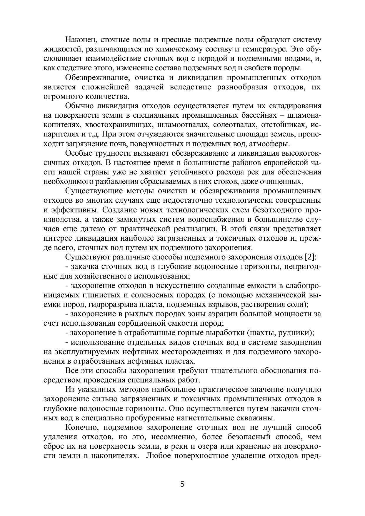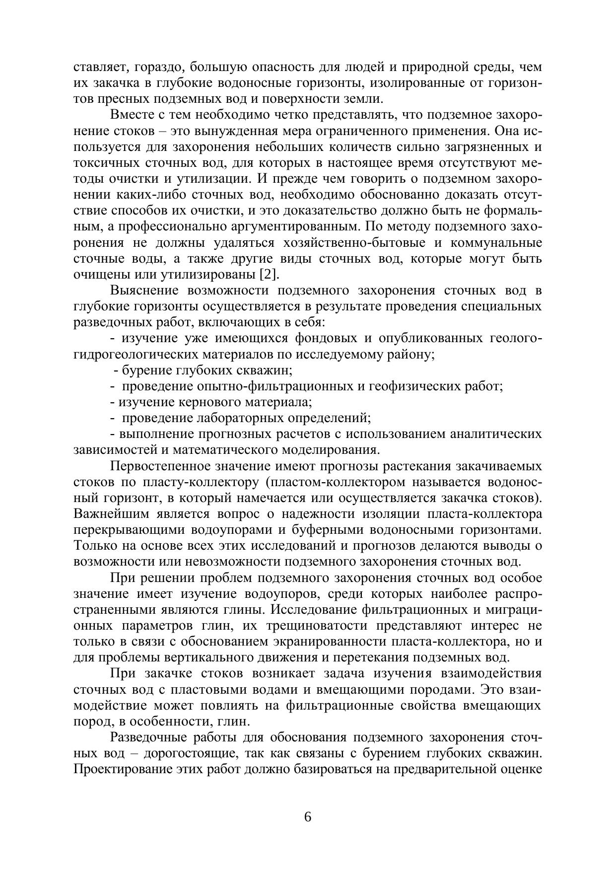 В учебном пособии рассмотрены гидрогеологические основы обоснования захоронения промышленных и сточных вод в недра, включающие в себя следующие вопросы: проблемы загрязнения подземных вод и окружающей среды, зарубежный и отечествен-ный опыт захоронения промышленных и сточных вод в недра, правовые аспекты, регламентирующие захоронение промышленных и сточных вод в недра, гидрогеологические исследования в связи с обоснованием захоронения промышленных и сточных вод в недра, гидрогеоэкологический контроль за захоронением промышленных и сточных вод в недра.