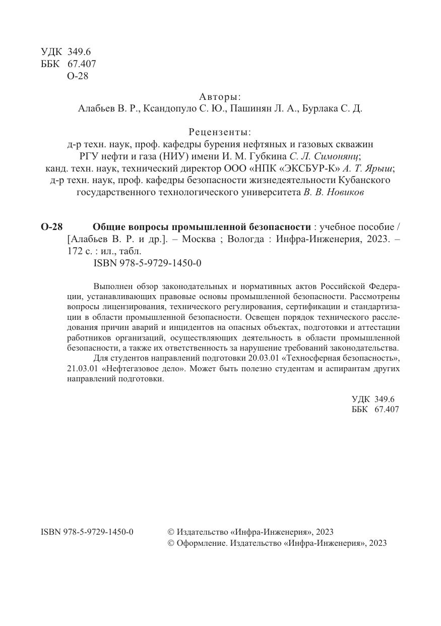 Выполнен обзор законодательных и нормативных актов Российской Федерации, устанавливающих правовые основы промышленной безопасности. Рассмотрены вопросы лицензирования, технического регулирования, сертификации и стандартизации в области промышленной безопасности. Освещен порядок технического расследования причин аварий и инцидентов на опасных объектах, подготовки и аттестации работников организаций, осуществляющих деятельность в области промышленной безопасности, а также их ответственность за нарушение требований законодательства.