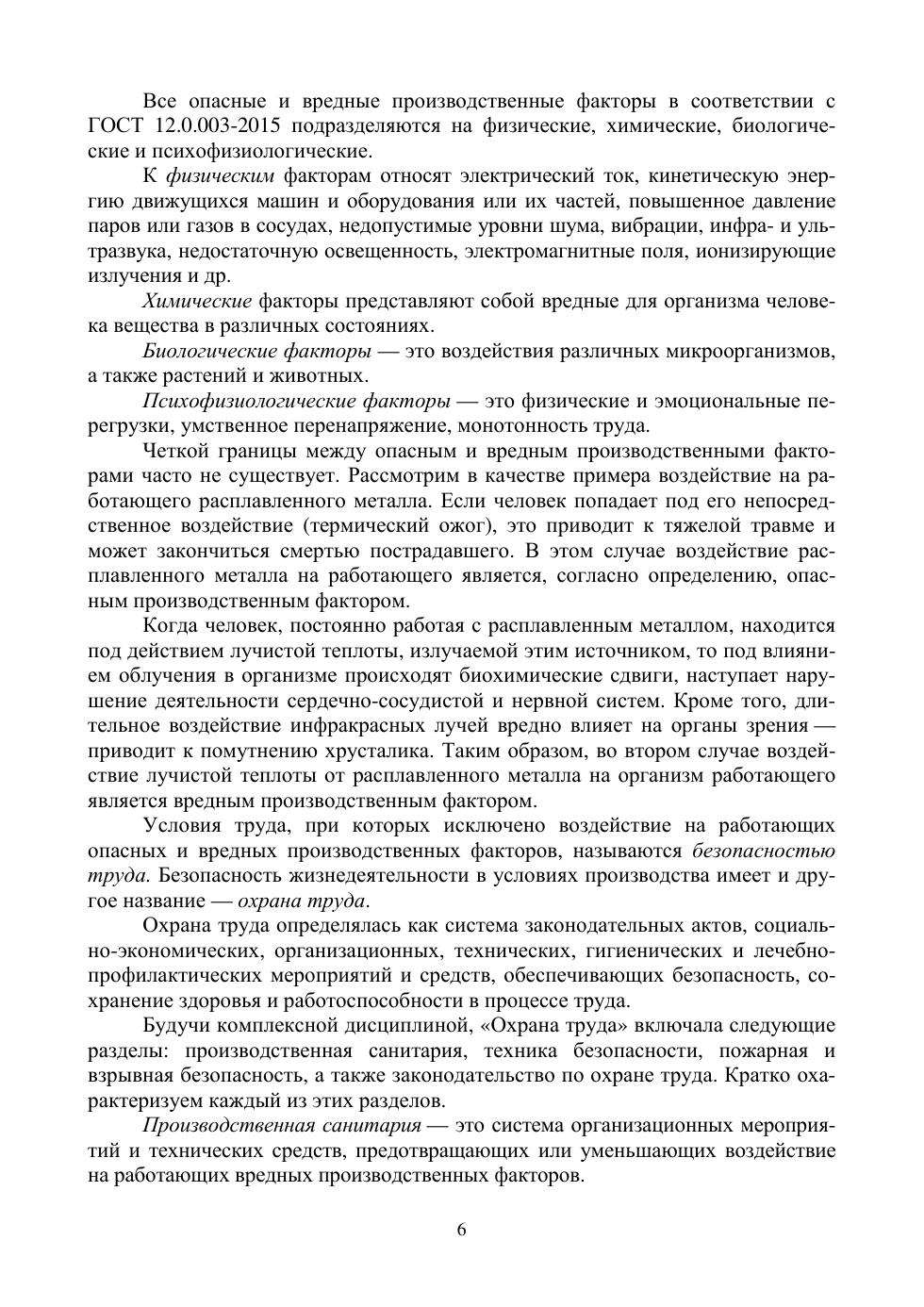 В настоящем учебном пособии рассмотрены наиболее актуальные вопросы охраны труда, такие как идентификация негативных факторов производственной среды, воздействие этих факторов на человека и защита от них, психофизиологические основы безопасности труда, методы обеспечения комфортных условий трудовой деятельности. Учебное пособие соответствует требованиям Федерального государственного образовательного стандарта среднего профессионального образования по направлениям подготовки, входящим в группу «Инженерное дело, технологии и технические науки». Пособие предназначено для студентов средних профессиональных учебных заведений.