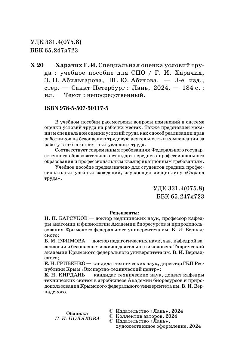 В учебном пособии рассмотрены вопросы изменений в системе оценки условий труда на рабочих местах. Также представлен механизм специальной оценки условий труда как способ реализации прав работников на безопасную трудовую деятельность и компенсации за работу в неблагоприятных условиях труда. Соответствует современным требованиям Федерального государственного образовательного стандарта среднего профессионального образования и профессиональным квалификационным требованиям. Учебное пособие предназначено для студентов средних профессиональных учебных заведений, изучающих дисциплину «Охрана труда».