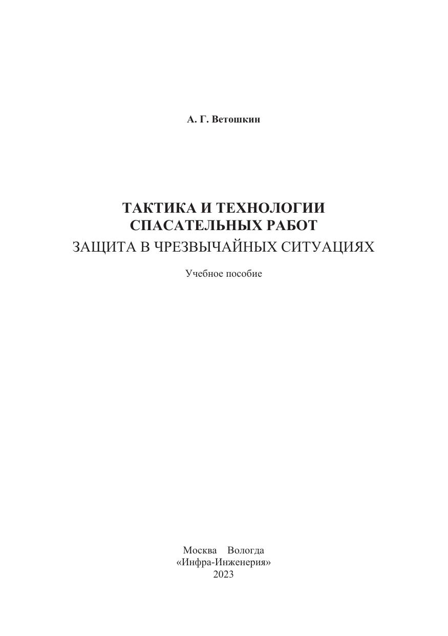 Тактика и технологии спасательных работ. Защита в чрезвычайных ситуациях