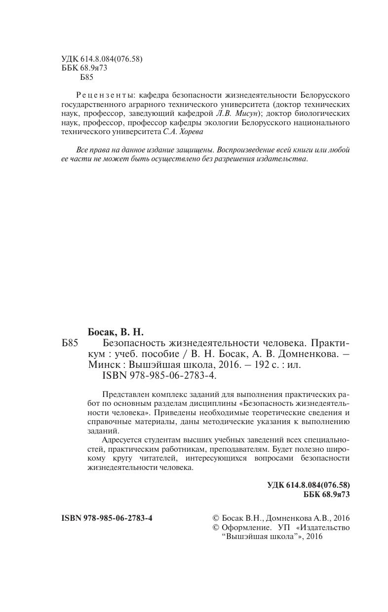 Представлен комплекс заданий для выполнения практических работ по основным разделам дисциплины «Безопасность жизнедеятельности человека». Приведены необходимые теоретические сведения и справочные материалы, даны методические указания к выполнению заданий. Адресуется студентам высших учебных заведений всех специальностей, практическим работникам, преподавателям. Будет полезно широкому кругу читателей, интересующихся вопросами безопасности жизнедеятельности человека.