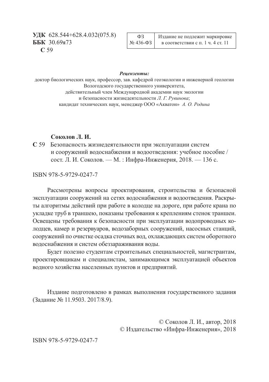 Безопасность жизнедеятельности при эксплуатации систем и сооружений водоснабжения и водоотведения