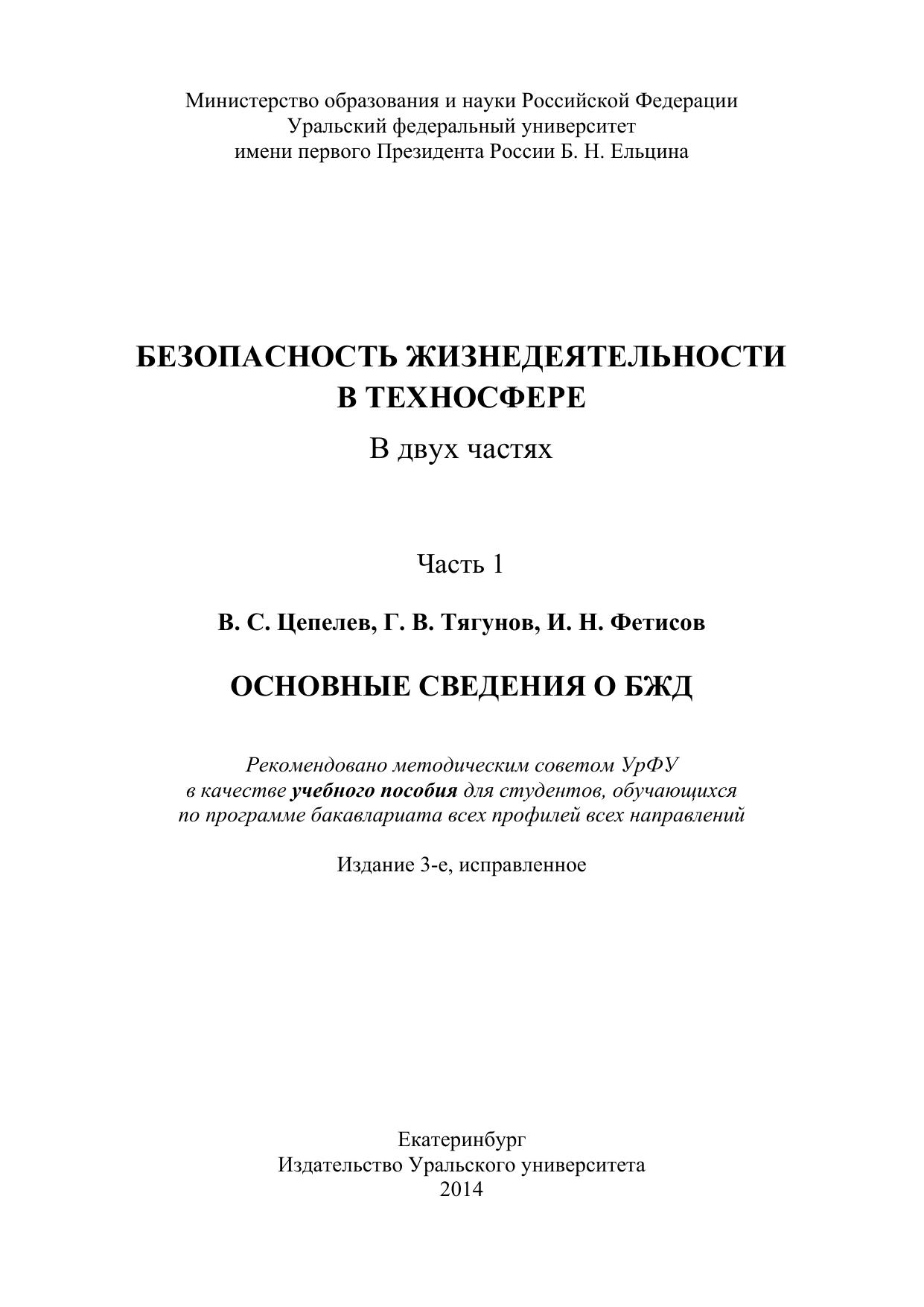 Безопасность жизнедеятельности в техносфере В двух частях. Часть 1 Основные сведения о БЖД: учебное пособие