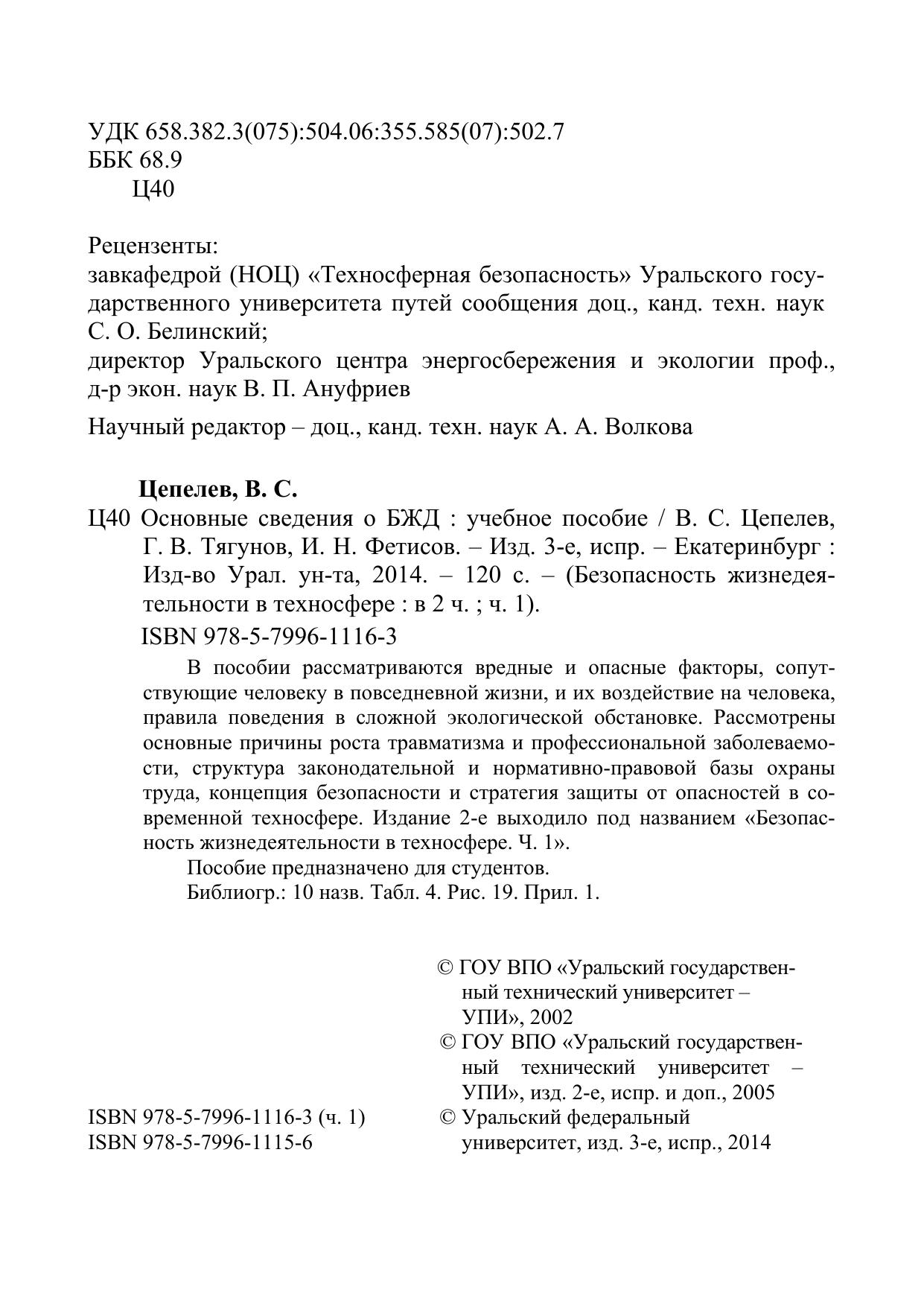 В пособии рассматриваются вредные и опасные факторы, сопутствующие человеку в повседневной жизни, и их воздействие на человека, правила поведения в сложной экологической обстановке. Рассмотрены основные причины роста травматизма и профессиональной заболеваемости, структура законодательной и нормативно-правовой базы охраны труда, концепция безопасности и стратегия защиты от опасностей в современной техносфере. Издание 2-е выходило под названием «Безопасность жизнедеятельности в техносфере. Ч. 1». Пособие предназначено для студентов.