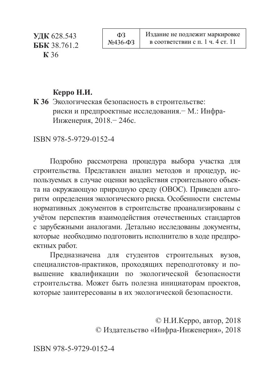 Предназначена для студентов строительных вузов, специалистов-практиков, проходящих переподготовку и повышение квалификации по экологической безопасности строительства. Может быть полезна инициаторам проектов, которые заинтересованы в их экологической безопасности.