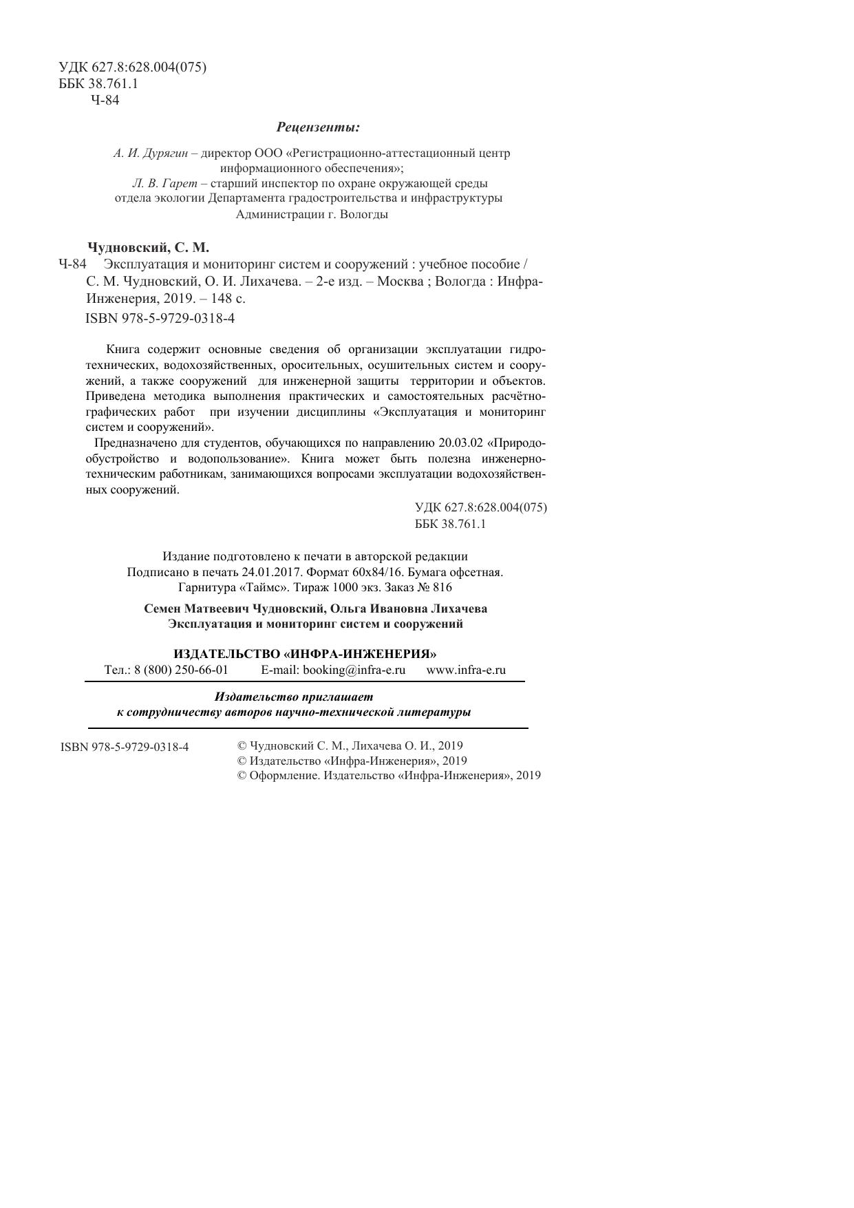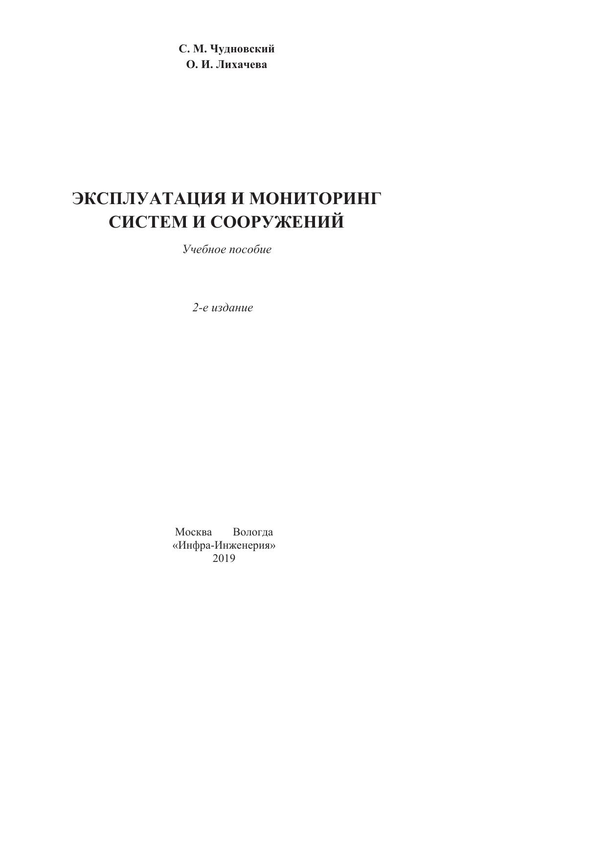 Книга содержит основные сведения об организации эксплуатации гидротехнических, водохозяйственных, оросительных, осушительных систем и сооружений, а также сооружений для инженерной защиты территории и объектов. Приведена методика выполнения практических и самостоятельных расчётно-графических работ при изучении дисциплины «Эксплуатация и мониторинг систем и сооружений».