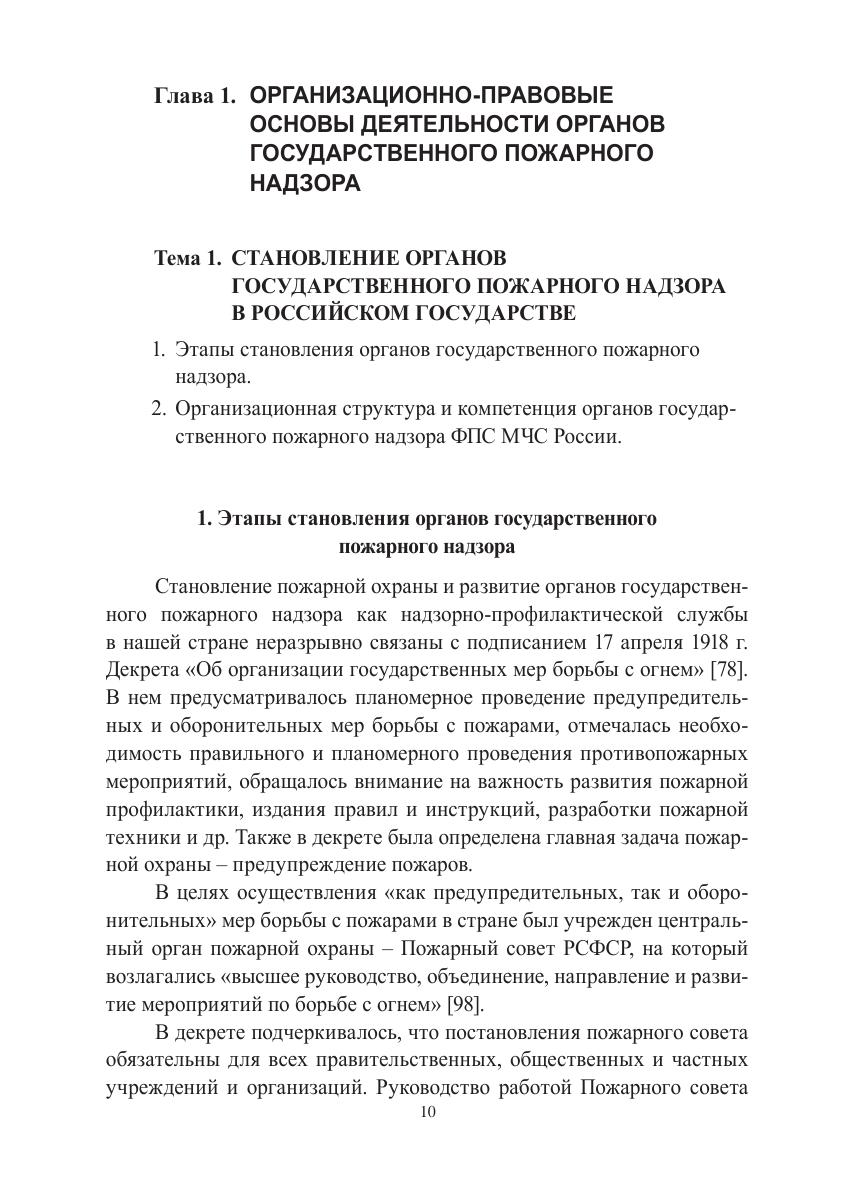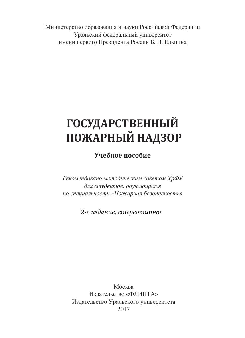 Учебное пособие содержит материалы об организации и особенностях деятельности органов государственного пожарного надзора Российской Федерации. За основу работы взяты положения действующих законодательных и иных нормативных правовых актов: федеральных законов, указов Президента Российской Федерации, постановлений Правительства Российской Федерации, приказов МЧС России и других. Издание предназначено для студентов, обучающихся по специальности 20.05.01 – Пожарная безопасность.