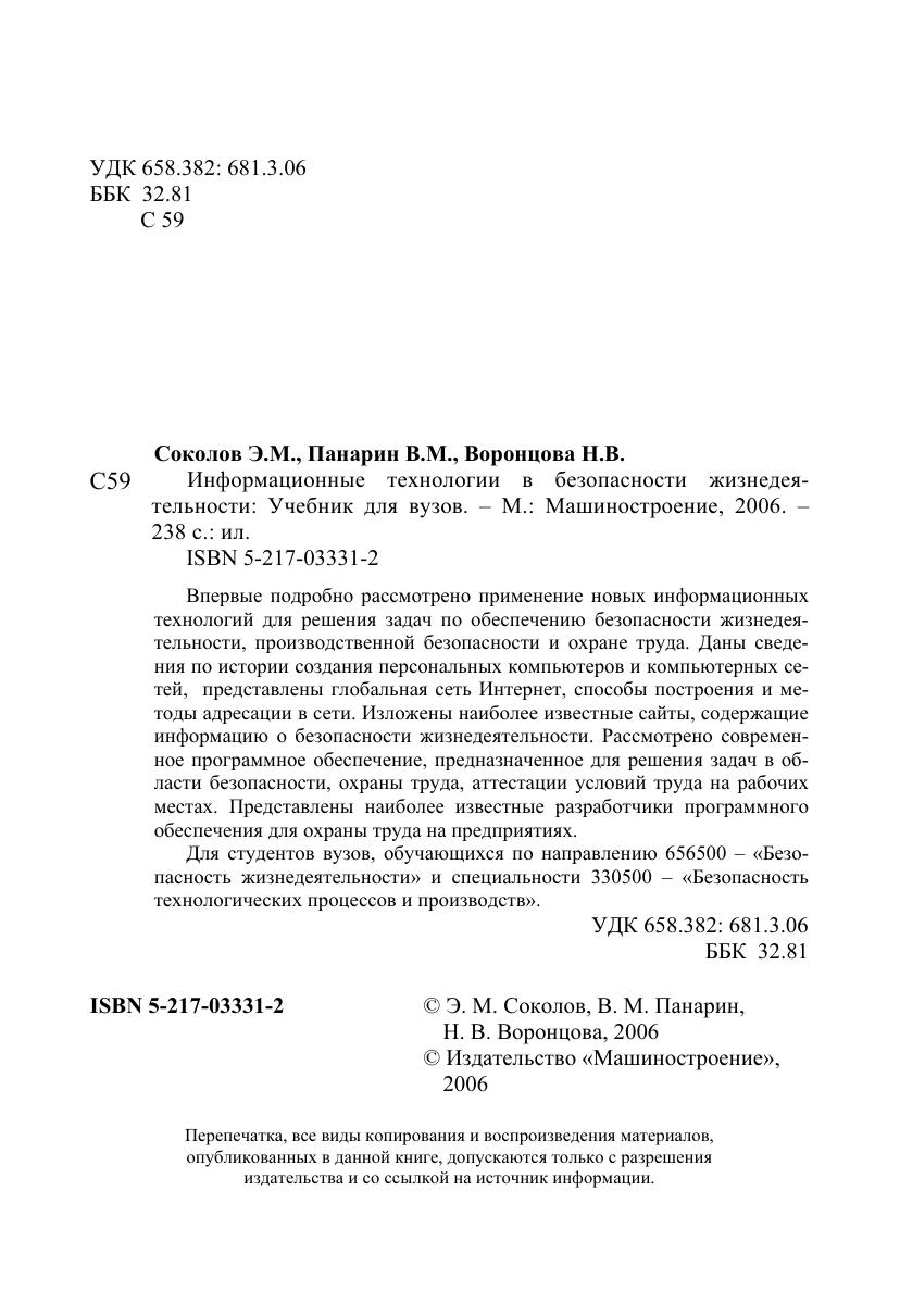 Гриф: Допущено УМО по университетскому политехническому образованию в качестве учебника для студентов высших учебных заведений, обучающихся по направлению 656500 – “Безопасность жизнедеятельности” и специальности 330500 – “Безопасность технологических процессов и производств”